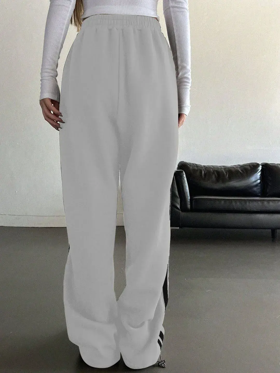 Grey knitted joggers Loose fit High-rise Length: regular Pattern: solid Flat-front, with no pleats design Feature: plain Na pockets