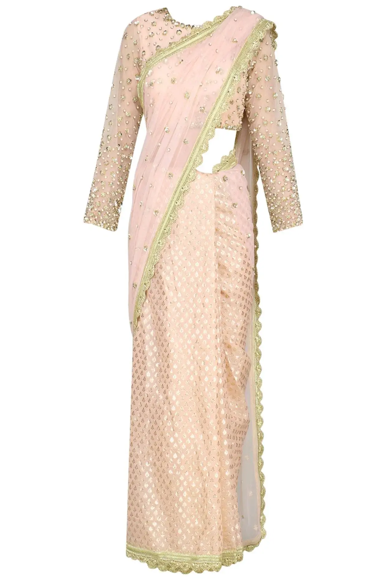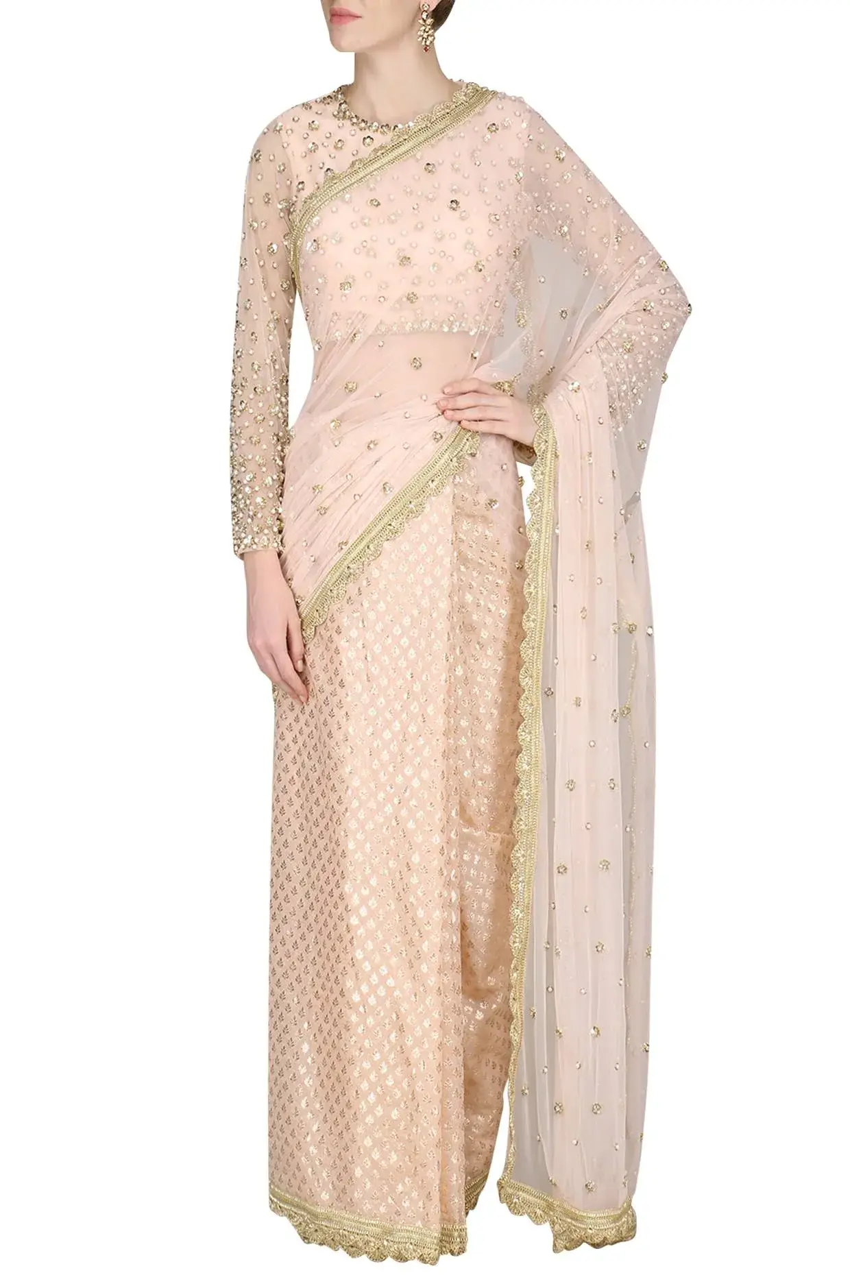 Featuring A Peach Saree In Net Base With Sequin Embroidery. It Is Paired With Matching Blouse. Perfect Wear For Festive Occasions Or Wedding Ceremonies. Components: 2 (Saree, Blouse) Fit: True To Size. Composition: Net. Care: Dry Clean Only.