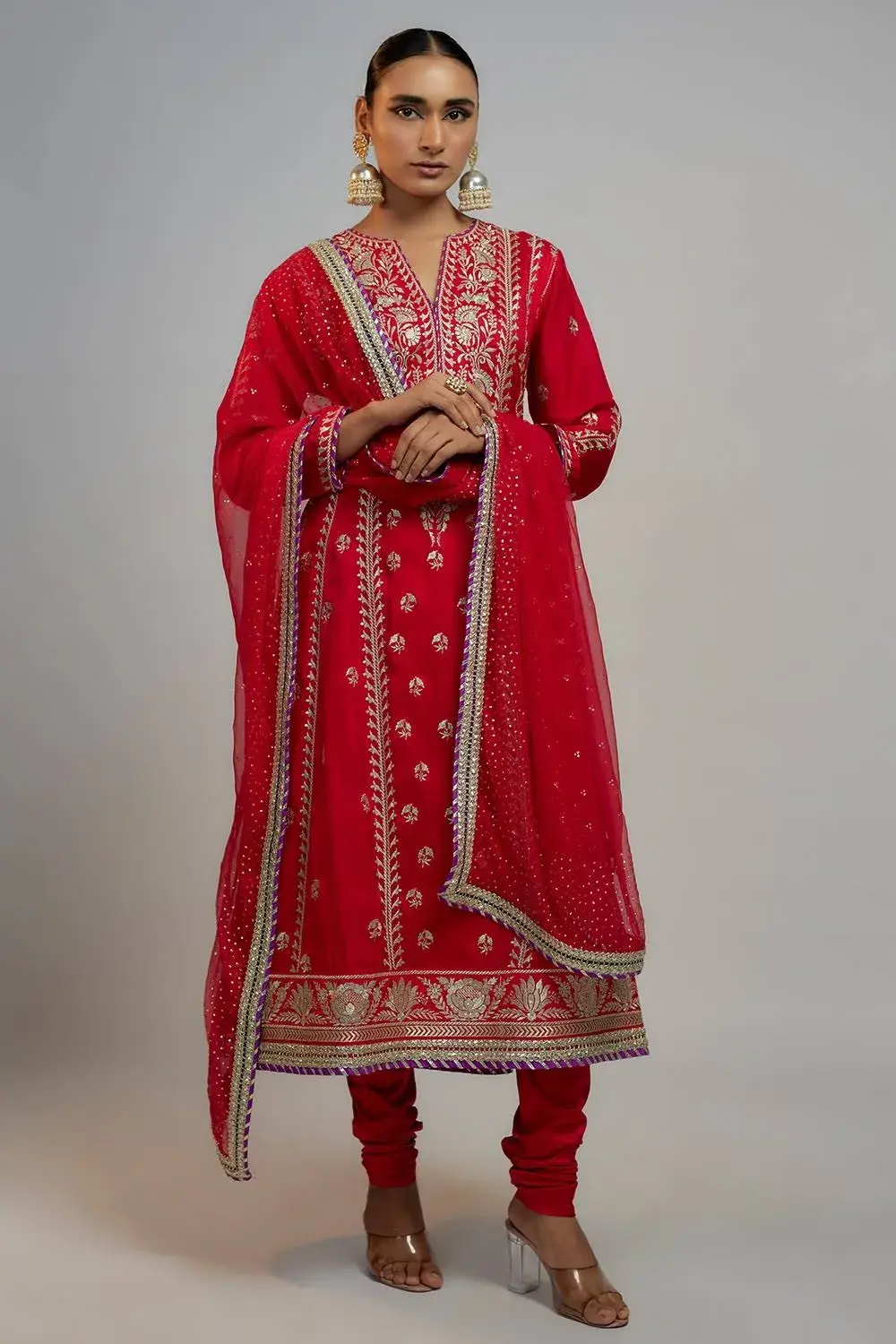 This Anarkali, paired with a churidar and a beautiful badla dupatta, features flowing kalis down the waistline, adding a classic and versatile touch for any occasion. . This is our signature BhumikaVAID ANKON No. of components-3