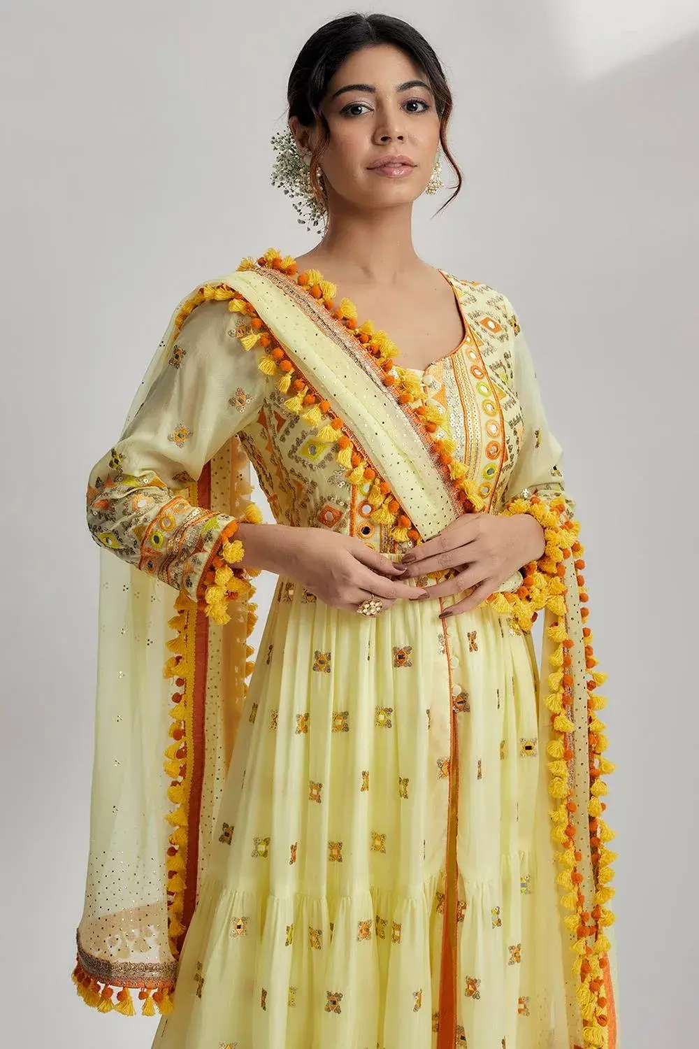 This fabric is perfect for creating stunning dresses, skirts, blouses, or any other garment that requires a touch of glamour and sophistication. It can also be used for home decor projects, such as pillow covers or curtains, to add a vibrant and luxurious accent to your living space.Embrace the beauty and charm of the Rianna Tiered AG fabric, and let...