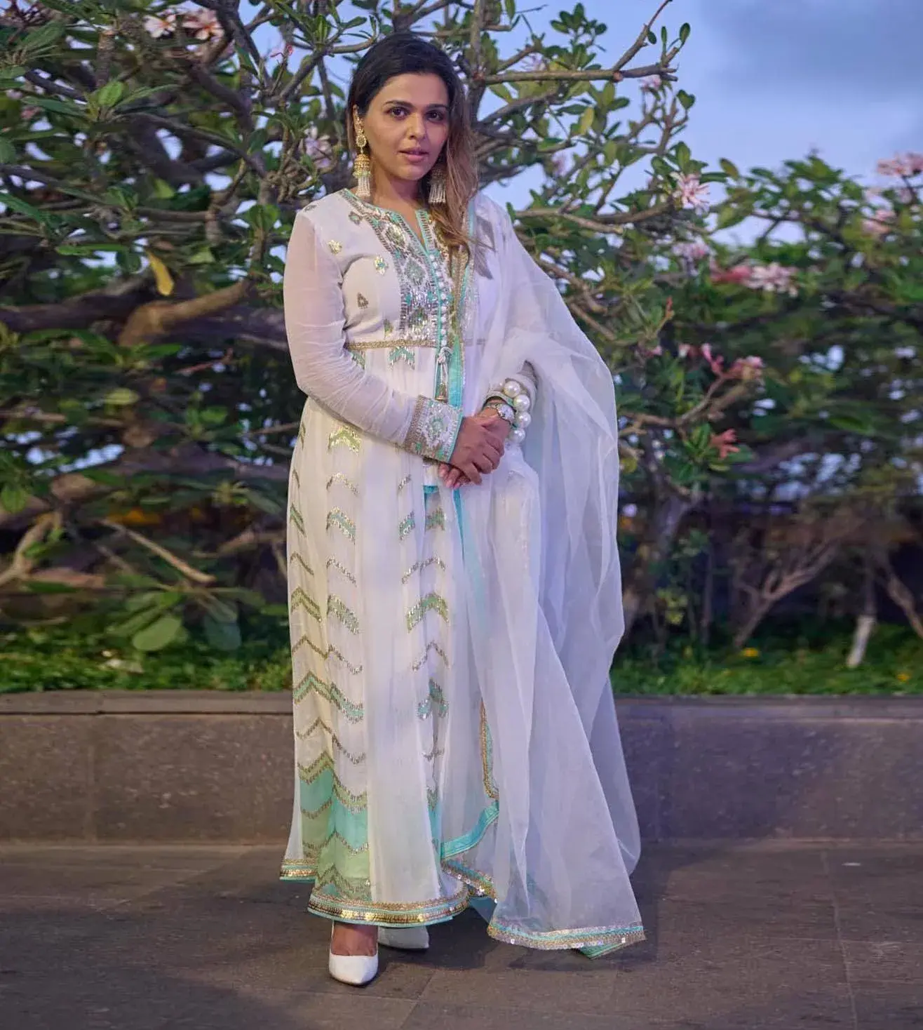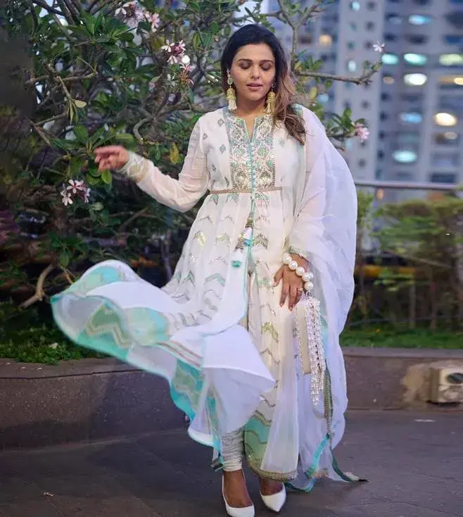 Stay high on the fashion parameters with this anarkali set. The kali front open anarkali has been adorned with embroidery. It has been paired with a chudidar and a dupatta to complete the set. The anarkali and dupatta have been made using georgette while churidar has been made using lycra. Disclaimer: Product colour may slightly vary due to photographic lighting...