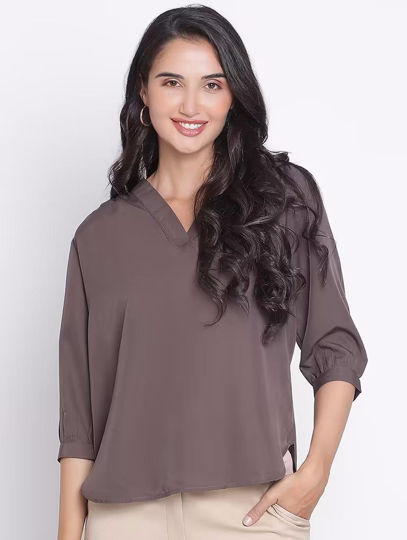 brown solid regular top