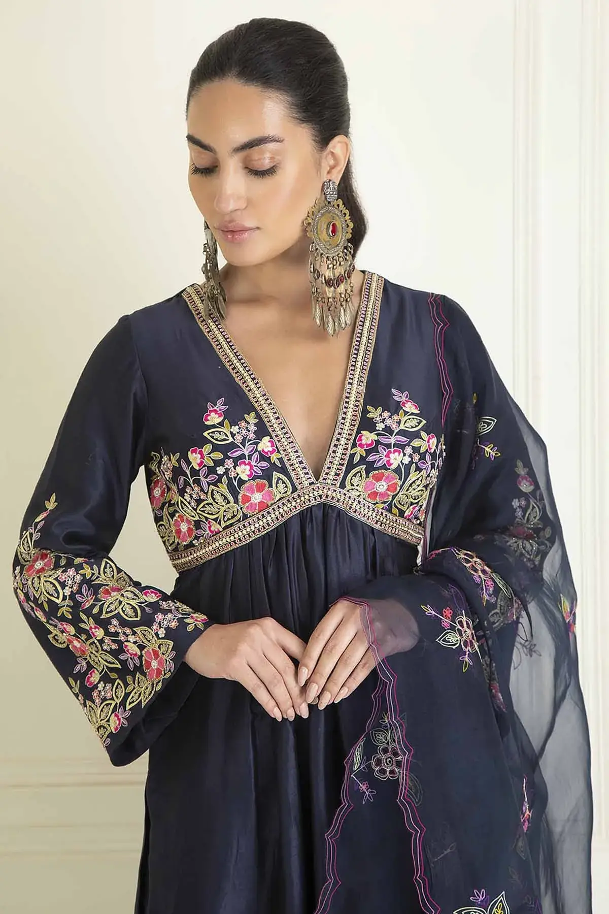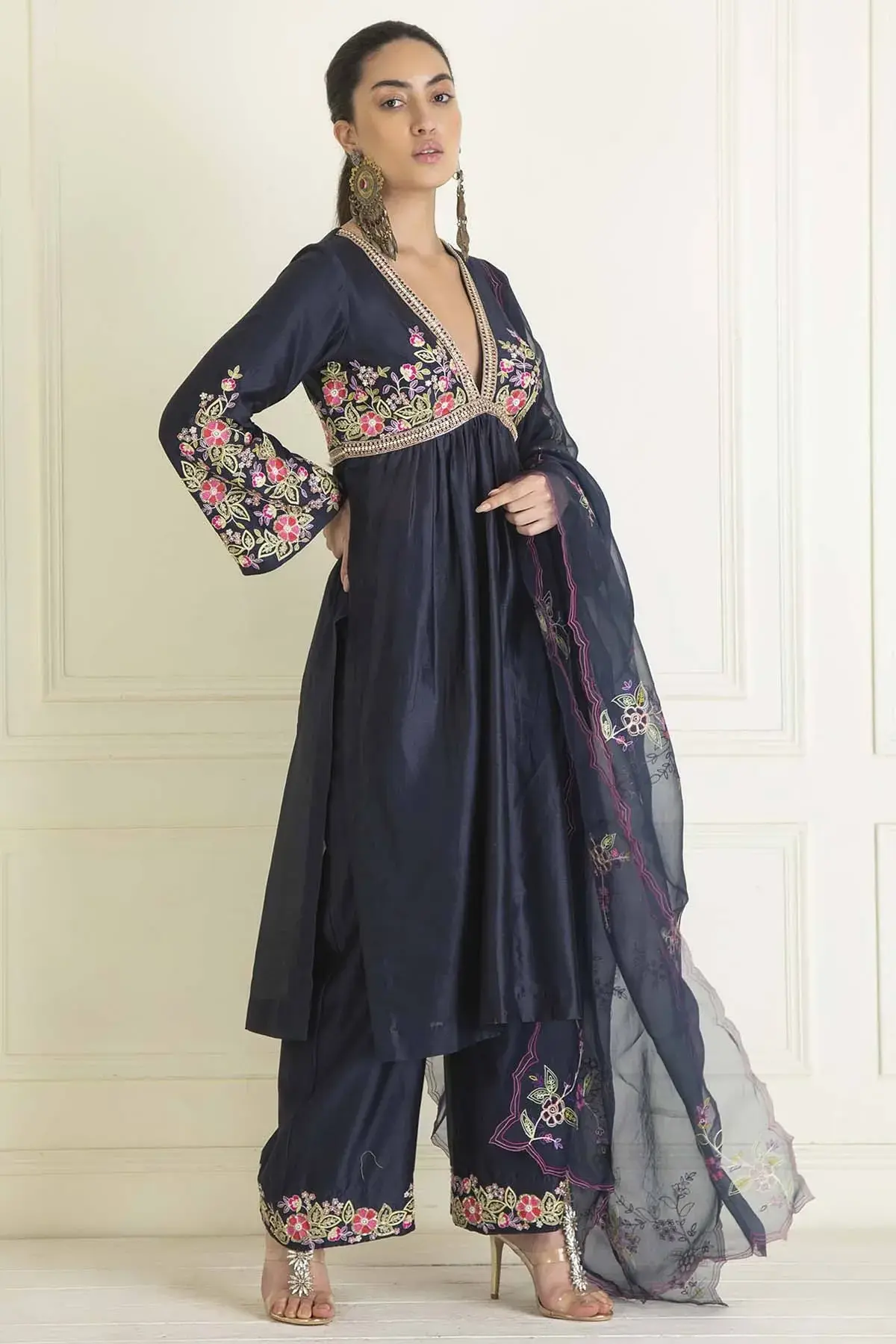 Buy Aastha Jain Midnight blue chanderi anarkali with sequins embroidery paired with pants & dupatta For Women Available online at ScrollnShops