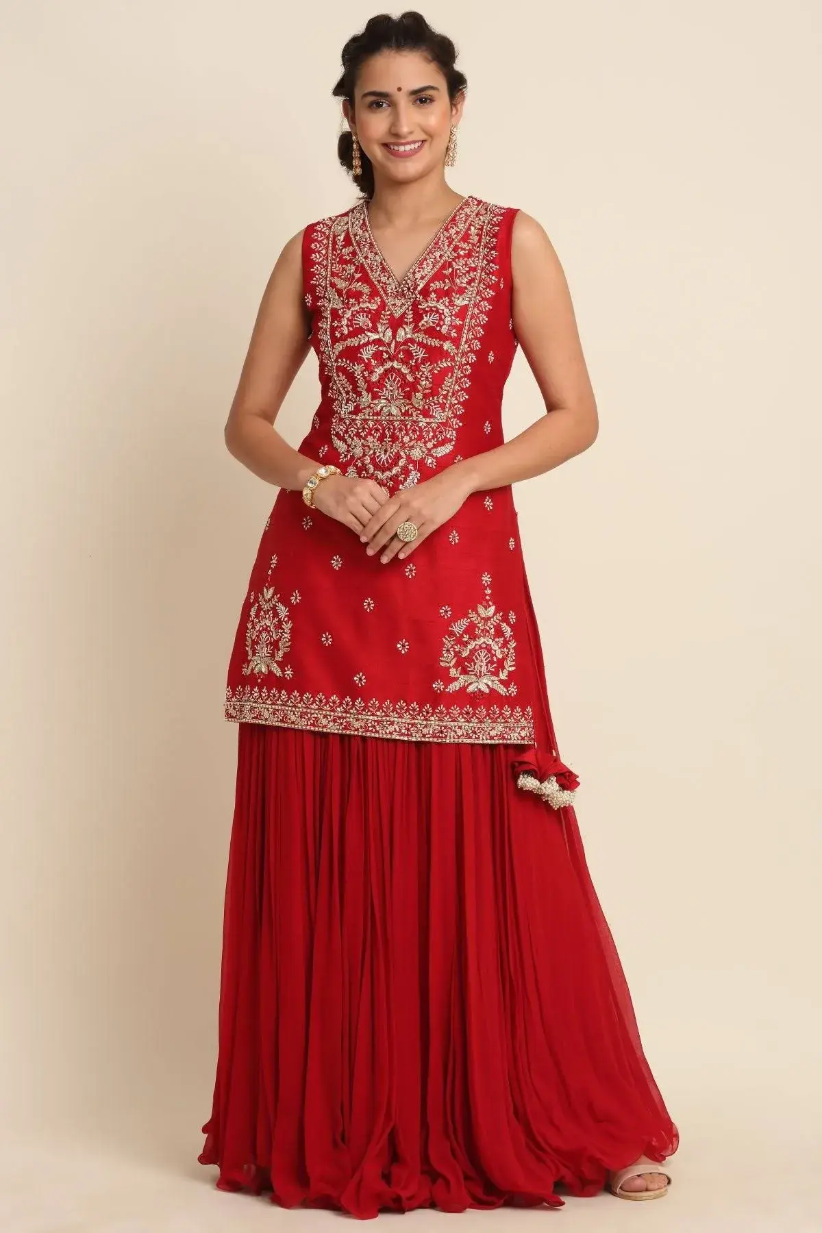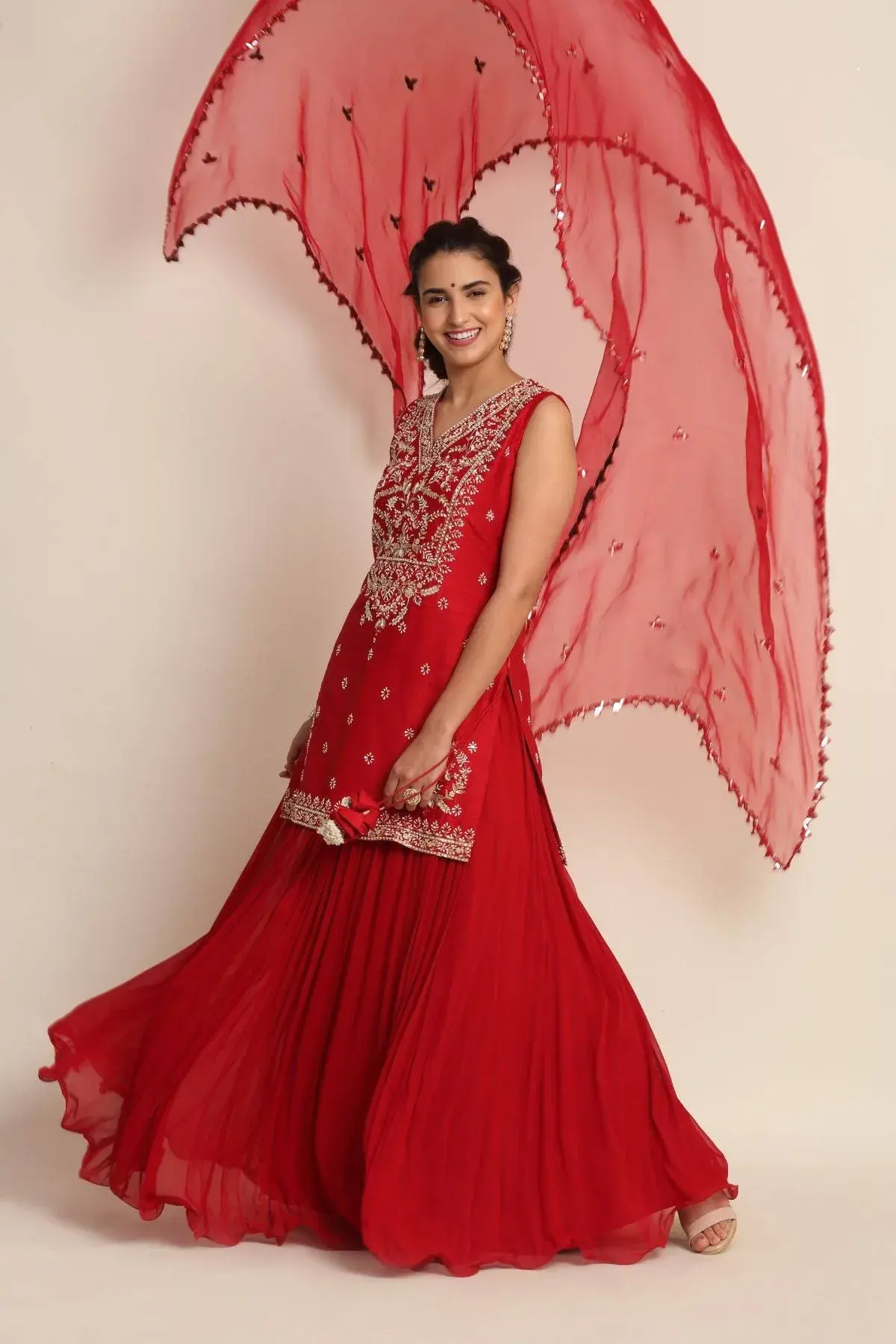Buy Aastha Jain Embroidered Kurta & Skirt Set For Women Available online at Scrollnshops XS / Red
