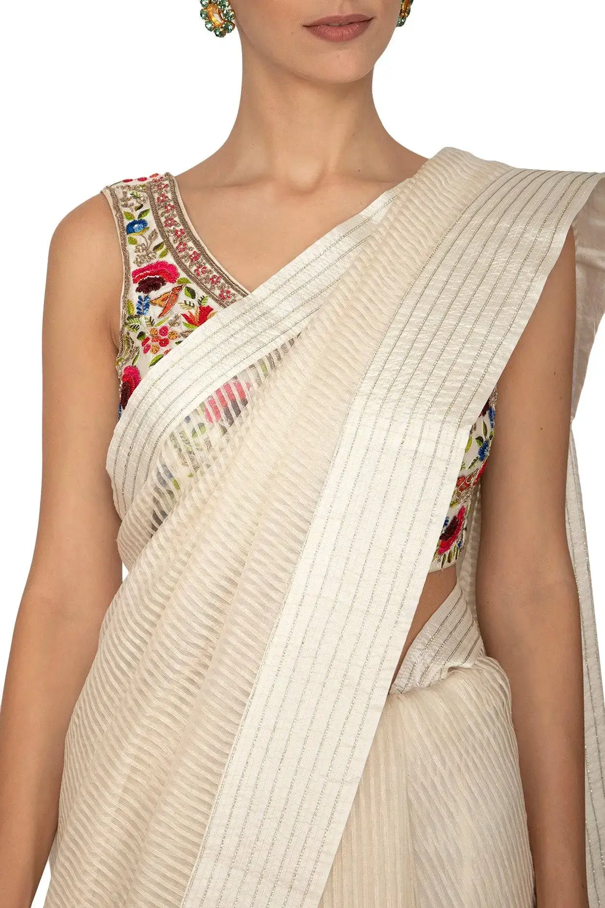 Buy Aastha Jain Embroidered Saree Set For Women Available online at Scrollnshops S / White