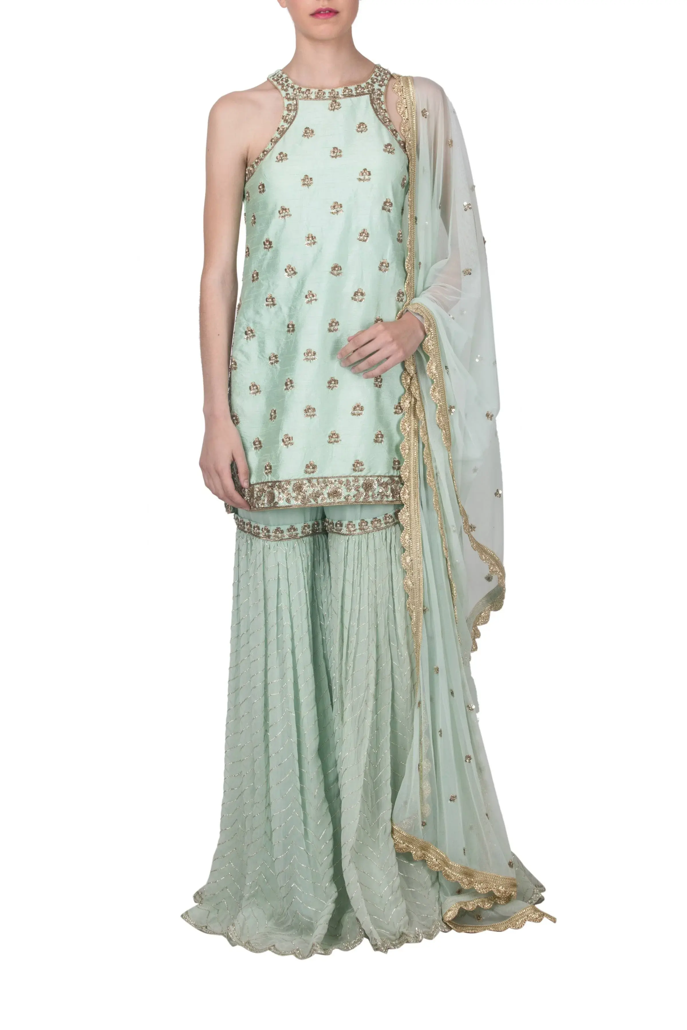 Buy Aastha Jain Embroidered Sharara Set For Women Available online at Scrollnshops M / Green