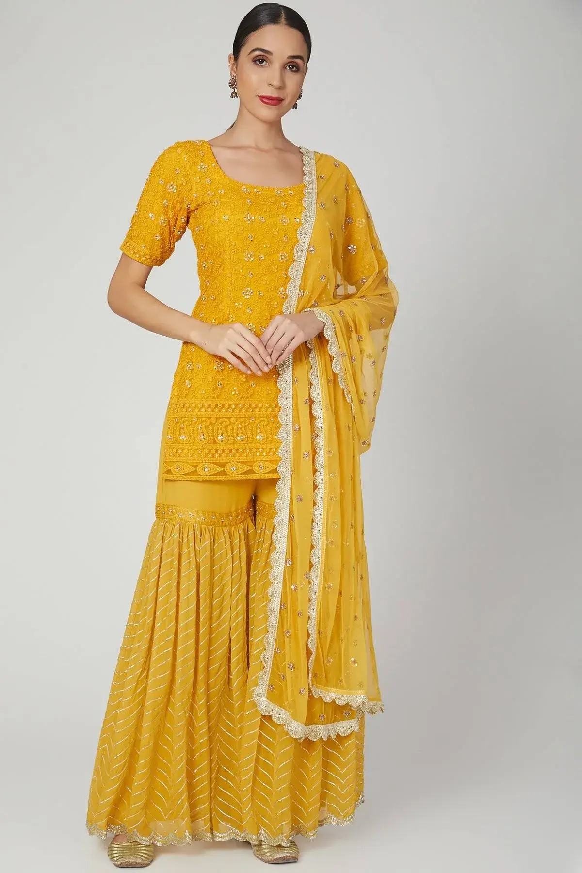 Buy Aastha Jain Embroidered Sharara Set For Women Available online at Scrollnshops M / Yellow