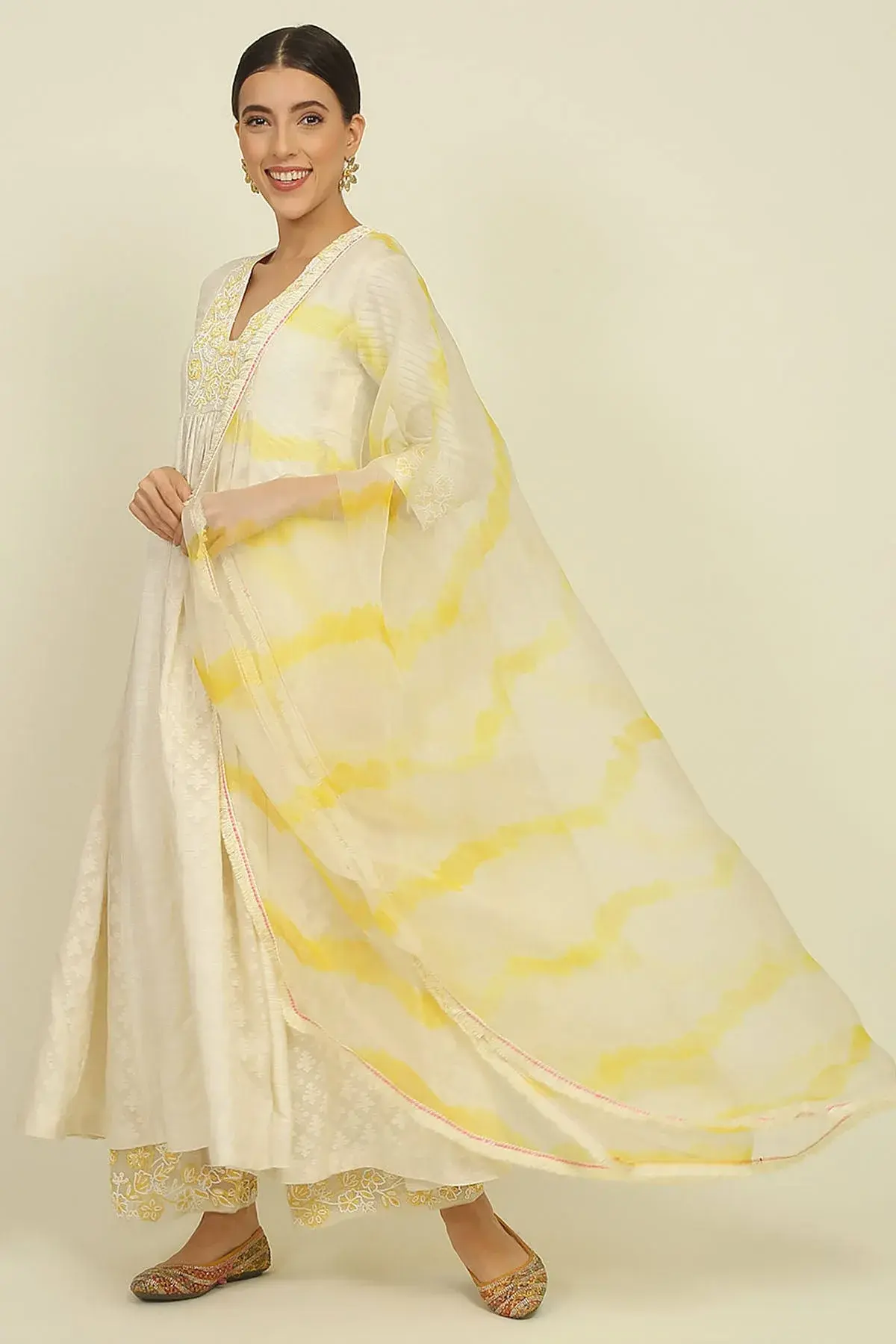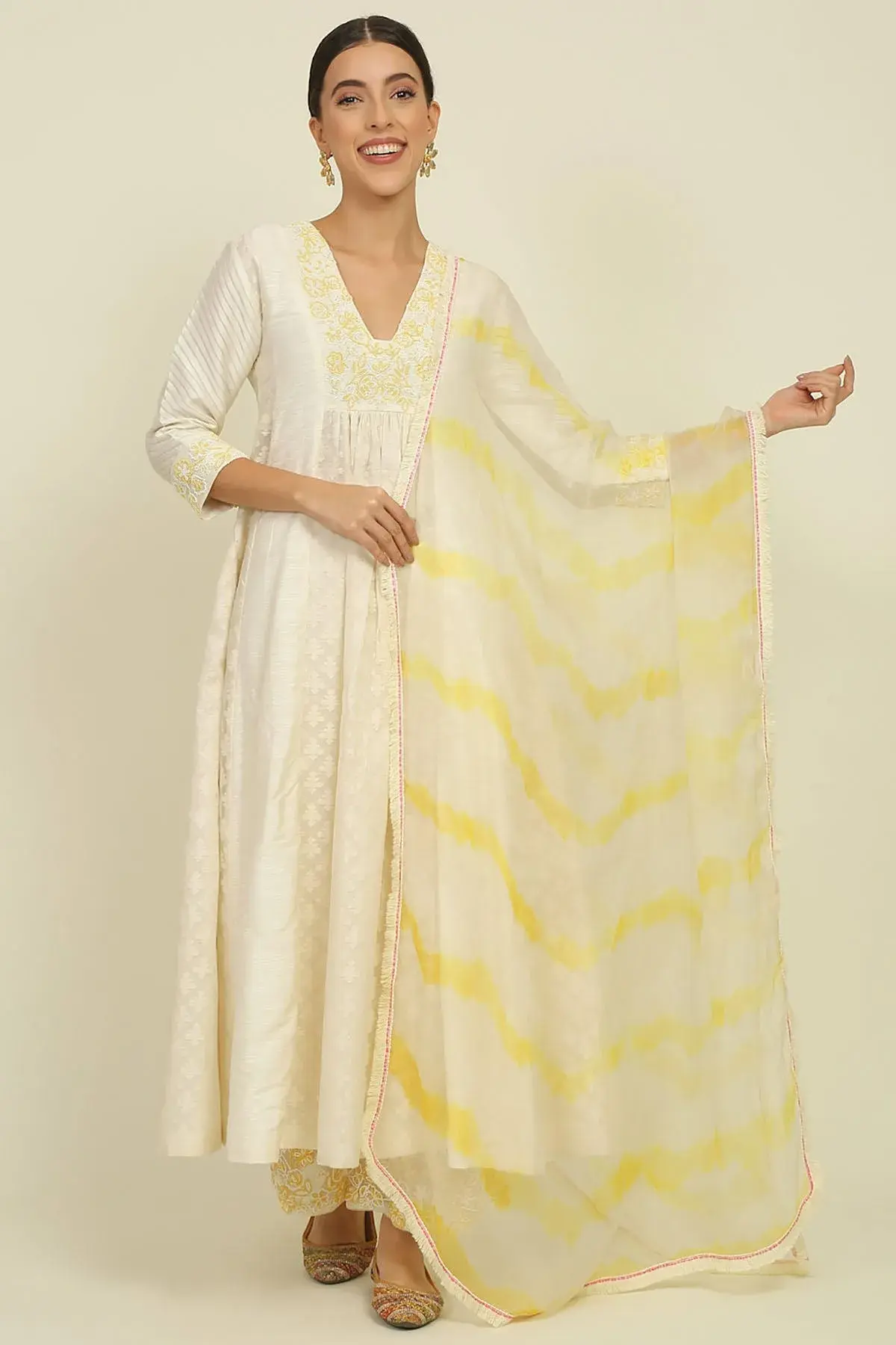 Buy Aastha Jain Ivory chanderi kurta with embroidered yoke paired with pants & dupatta For Women Available online at ScrollnShops