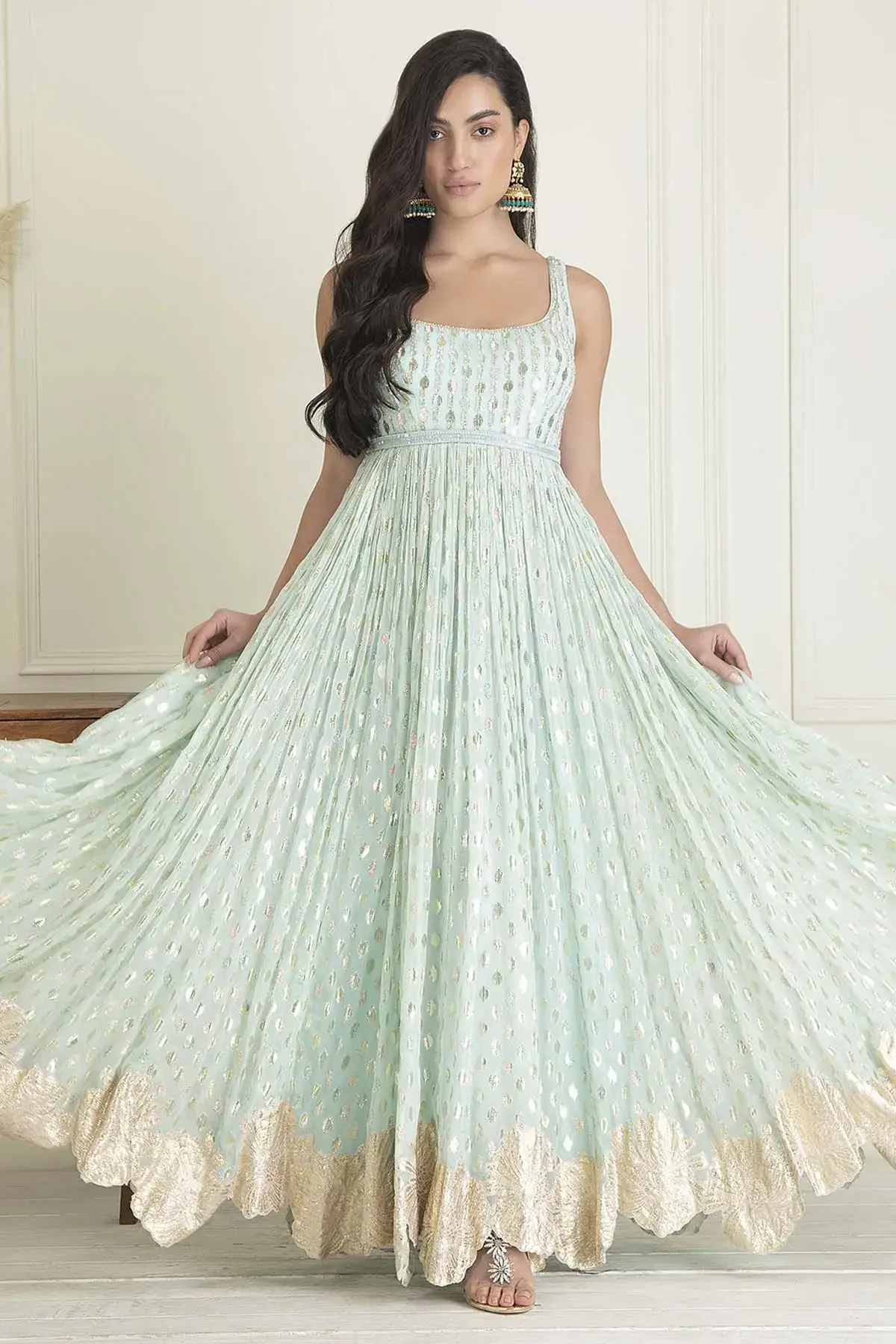 Buy Powder blue lurex georgette anarkali with sequins & beads embroidery, paired with dupatta by Designer Aastha Jain For Women Available online at ScrollnShops