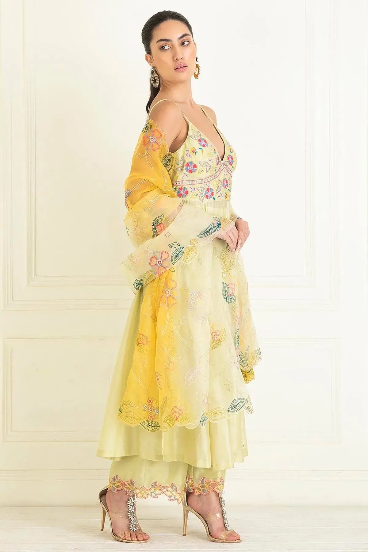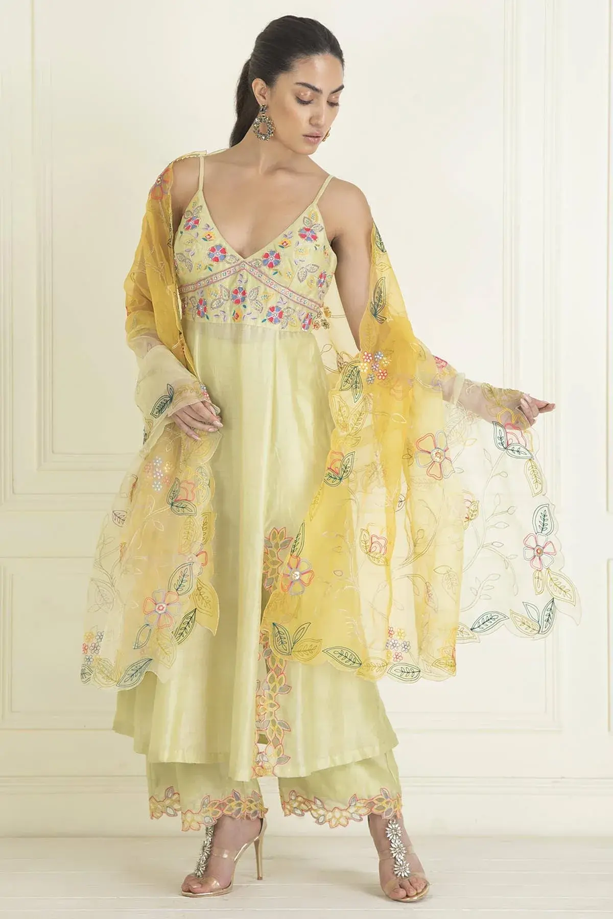 Buy Aastha Jain Iris yellow chanderi anarkali adorned with aari, sequins embroidery paired with pants & dupatta For Women Available online at ScrollnShops