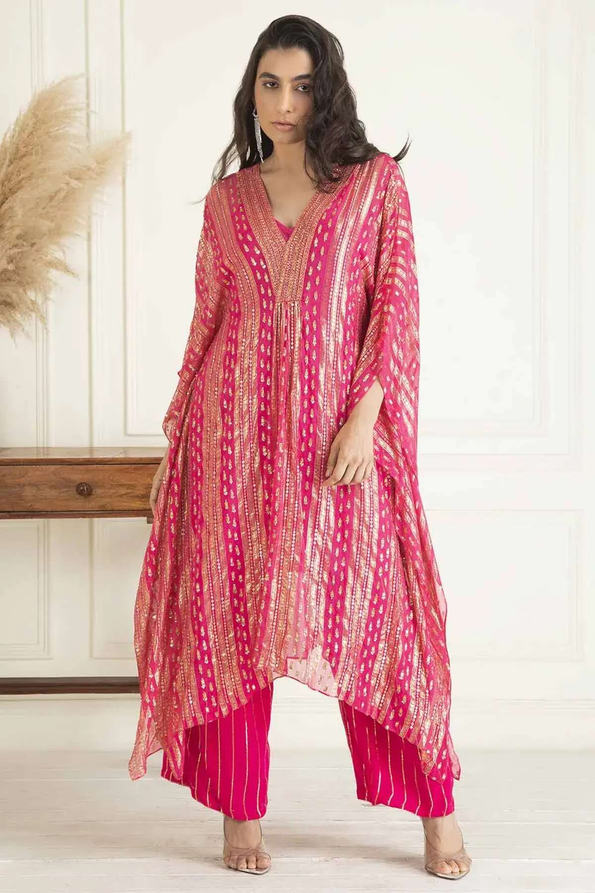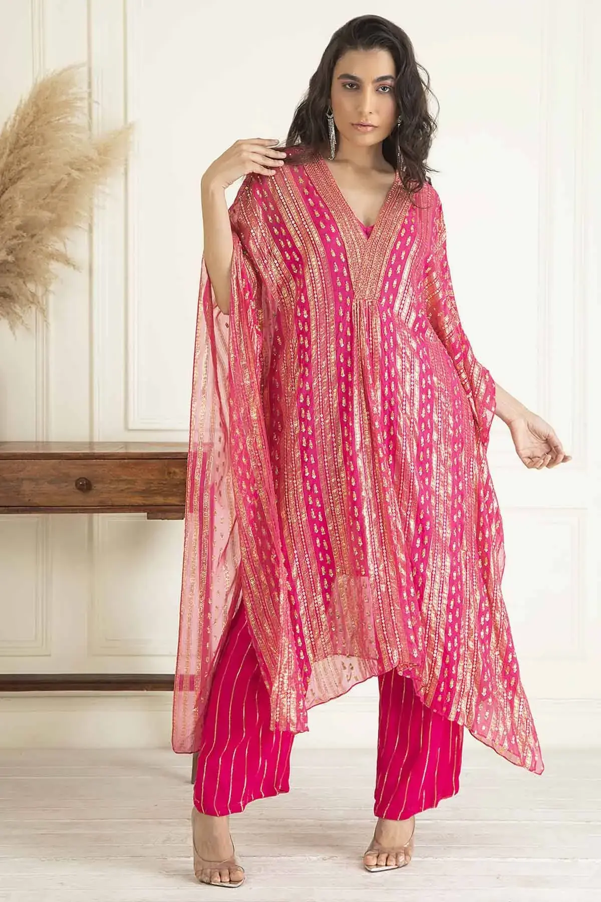 Buy Hot pink lurex georgette kaftan with sequins embroidery, paired with palazzo by Designer Aastha Jain For Women Available online at ScrollnShops
