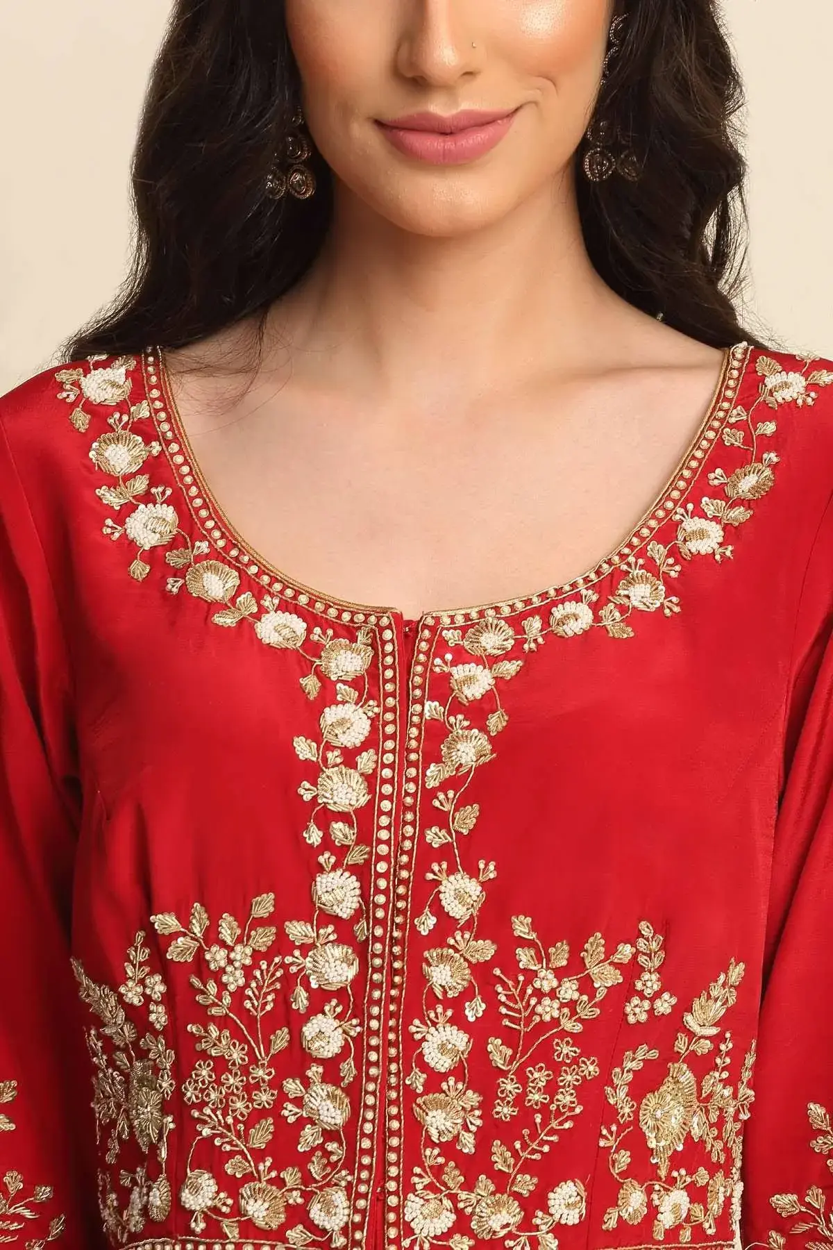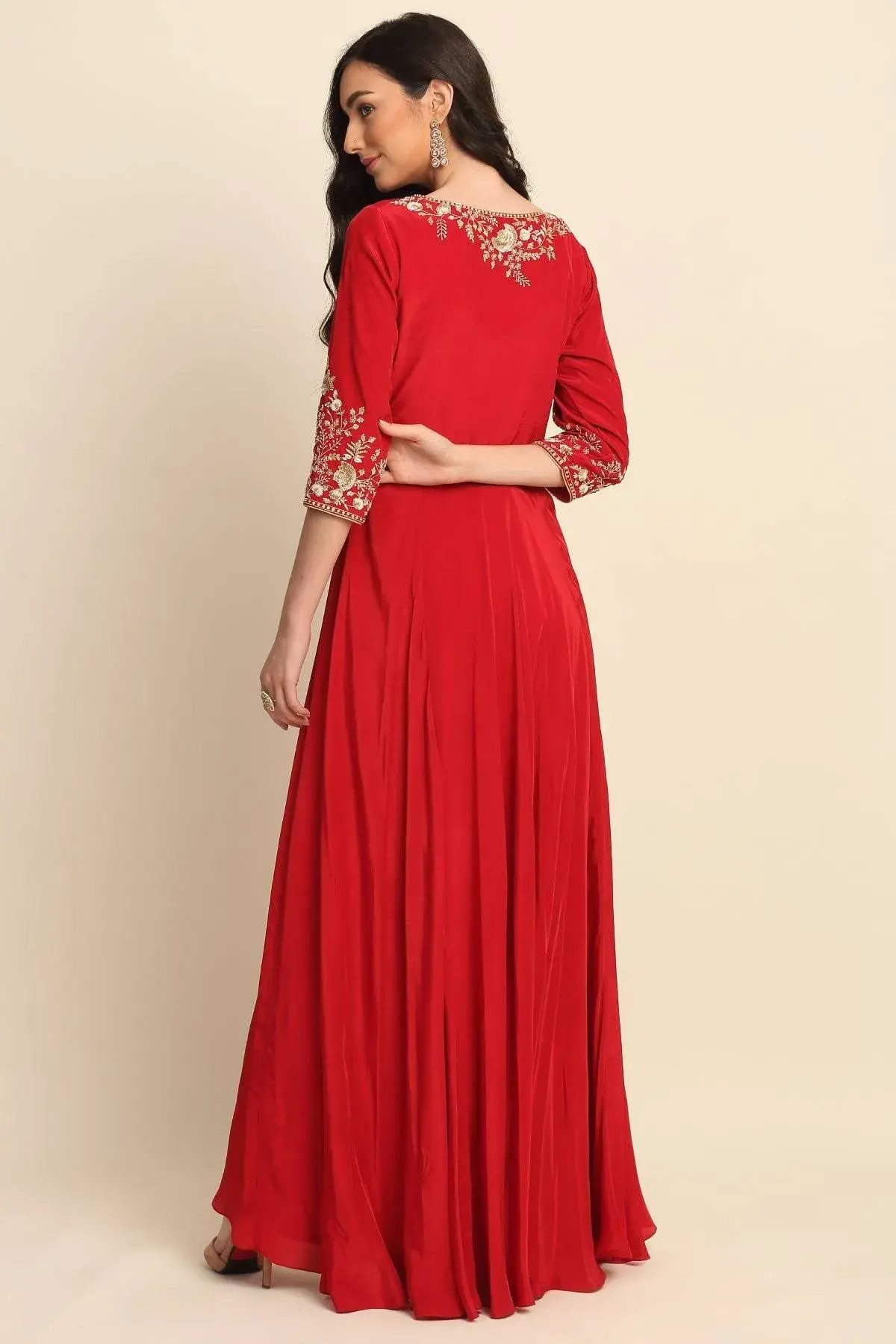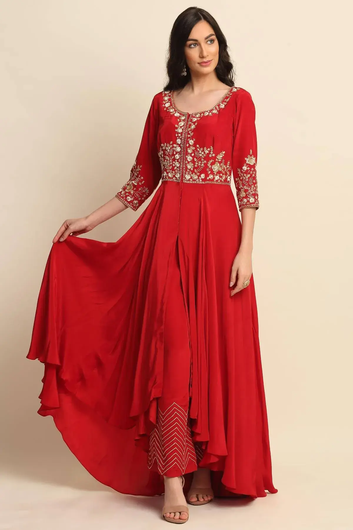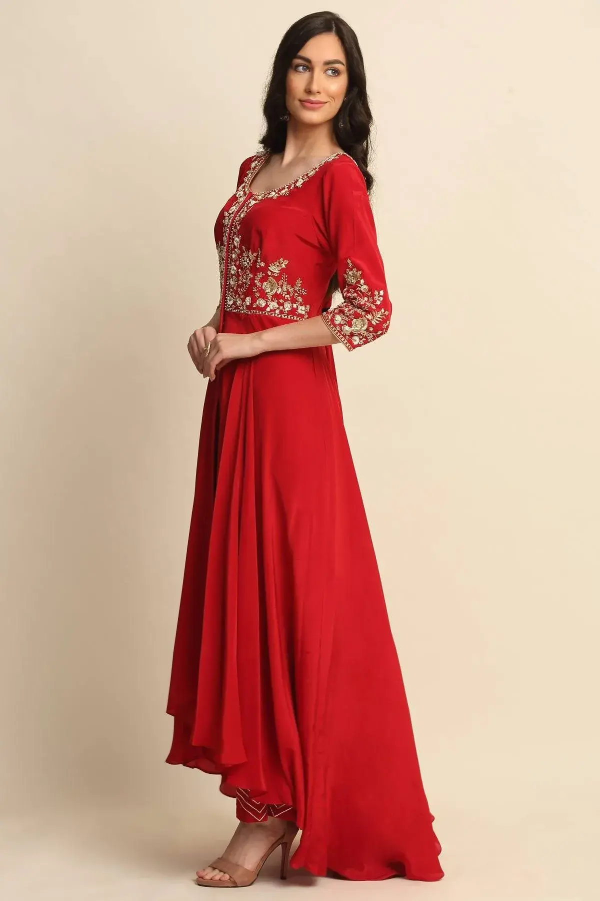 Buy Aastha Jain Sequins Front Open Kurta Set For Women Available online at Scrollnshops XL / Red