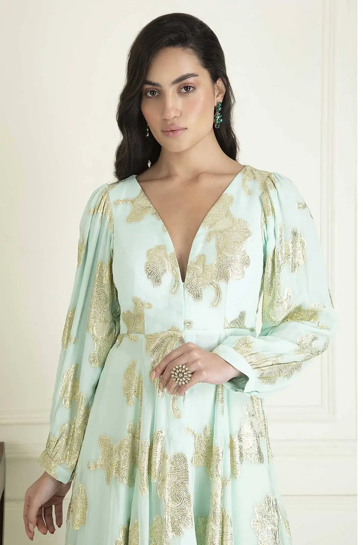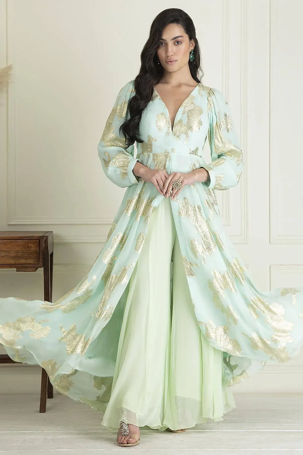 Buy Ice blue lurex georgette gathered kurta with high-low hem paired with flared palazzo by Designer Aastha Jain For Women Available online at ScrollnShops