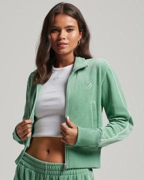 USP: Elevate your noughties style with our Code S Logo Velour top, an ideal choice for lovers of all things y2k. Finished with ribbed panelling and pocket detailing, this piece is not only bang on trend but also designed with comfortability and practicality in mind. Relaxed fit â the classic Superdry fit. Not too slim, not too loose, just right. Go for your normal size, Zip up, Stripe detail over shoulders and arms, Two exterior pockets, Superdry embroidered logo and patch.