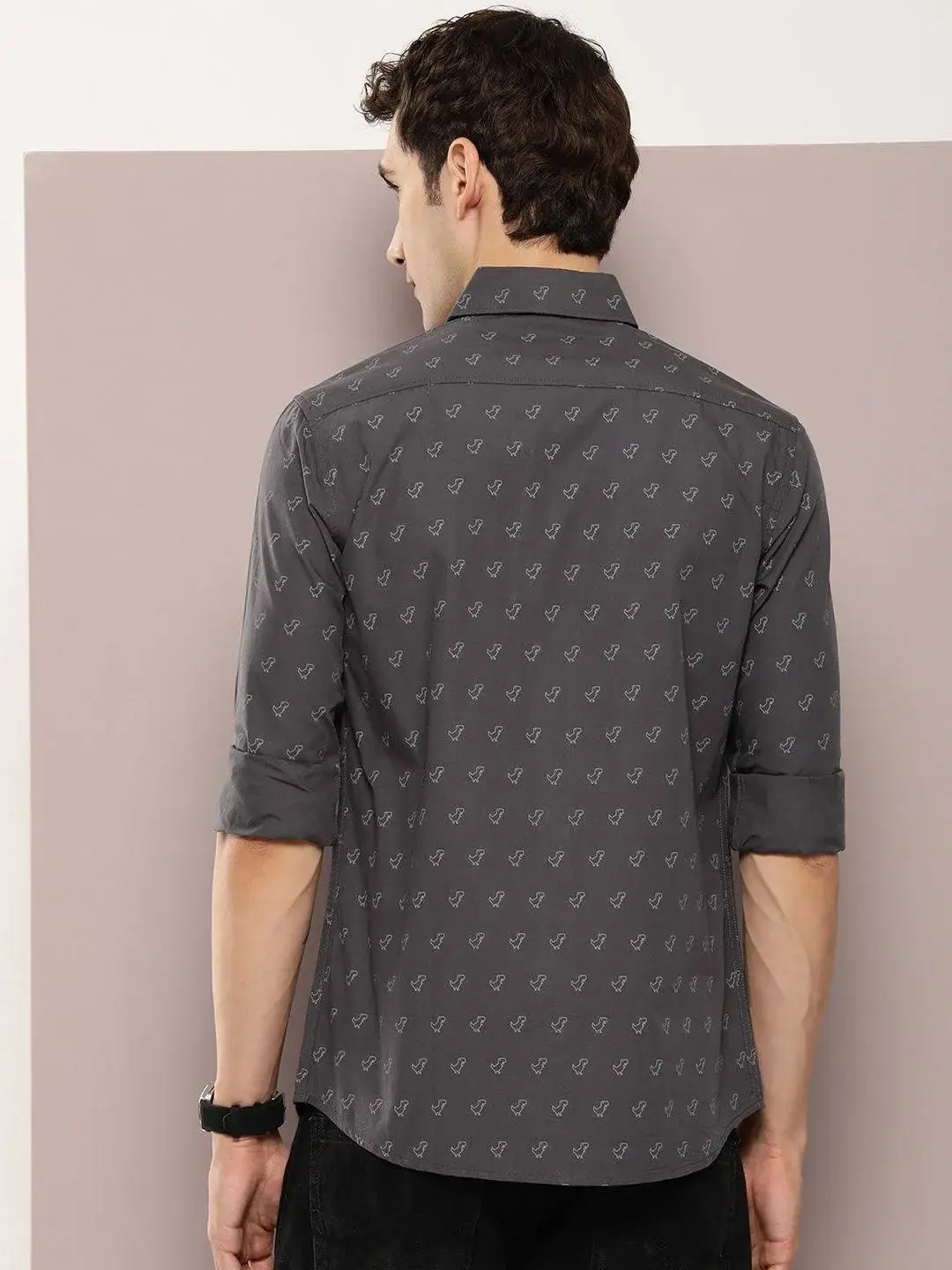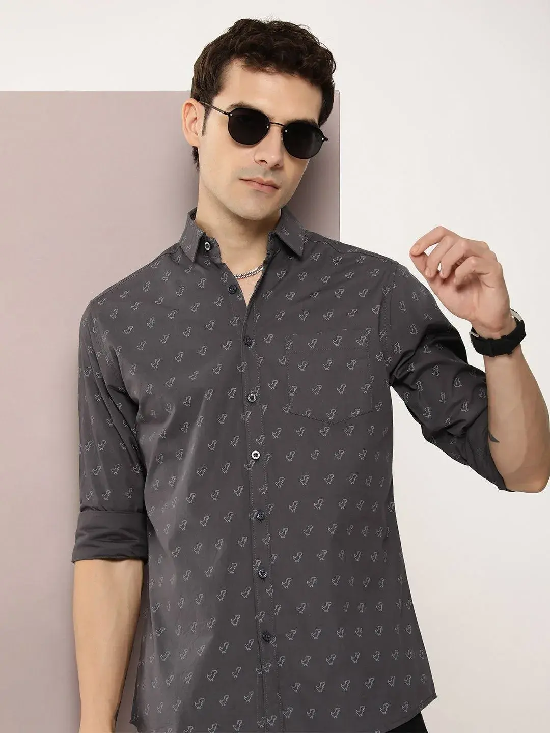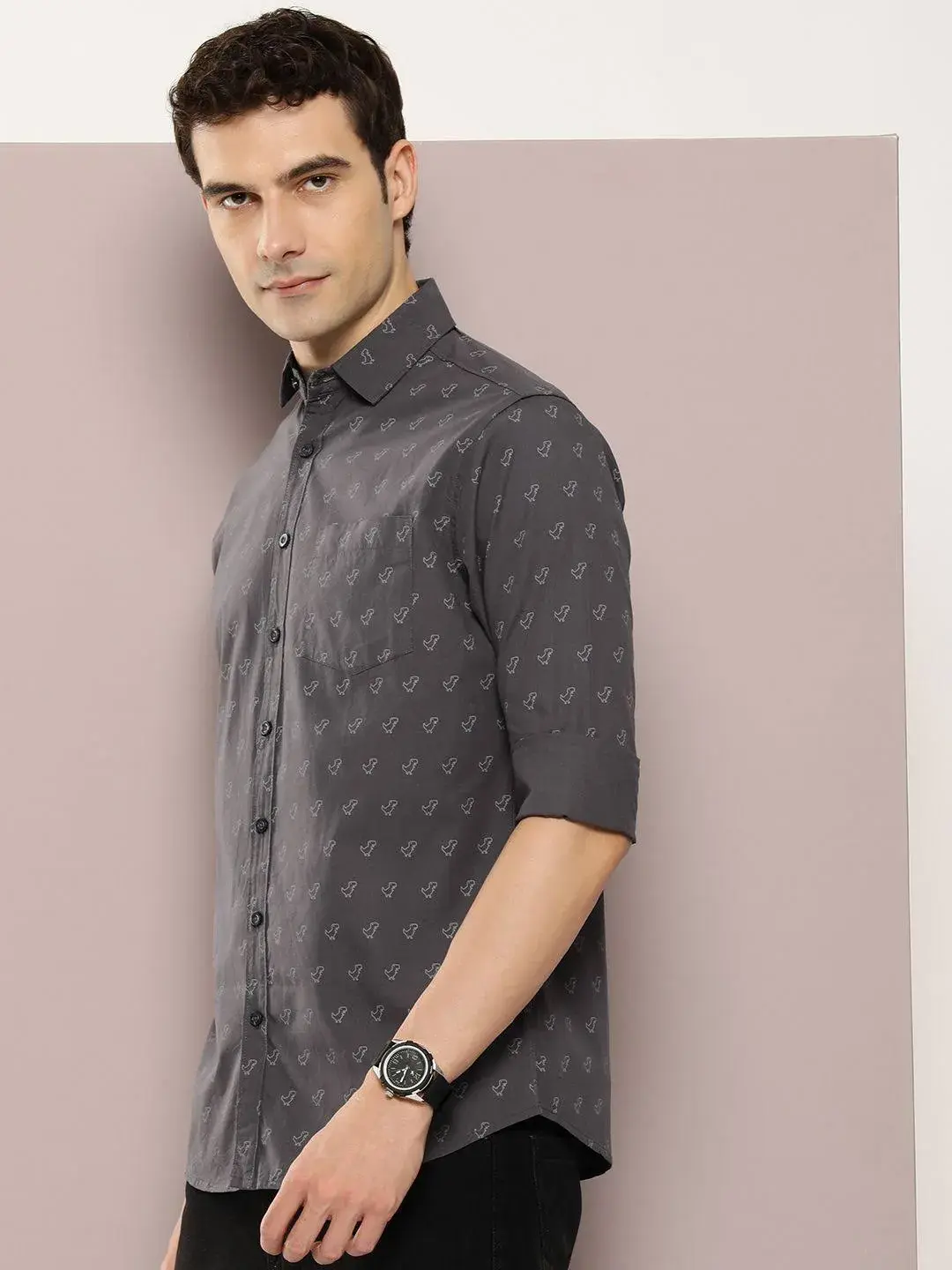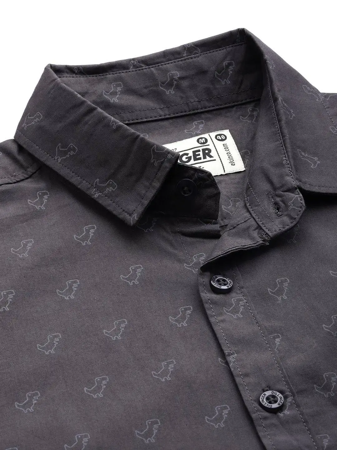 Discover comfort with this grey printed shirt from Dillinger. Made from high-quality cotton, this piece features full sleeves and a collar neck. Style it with denim and shoes to complete the ensemble.