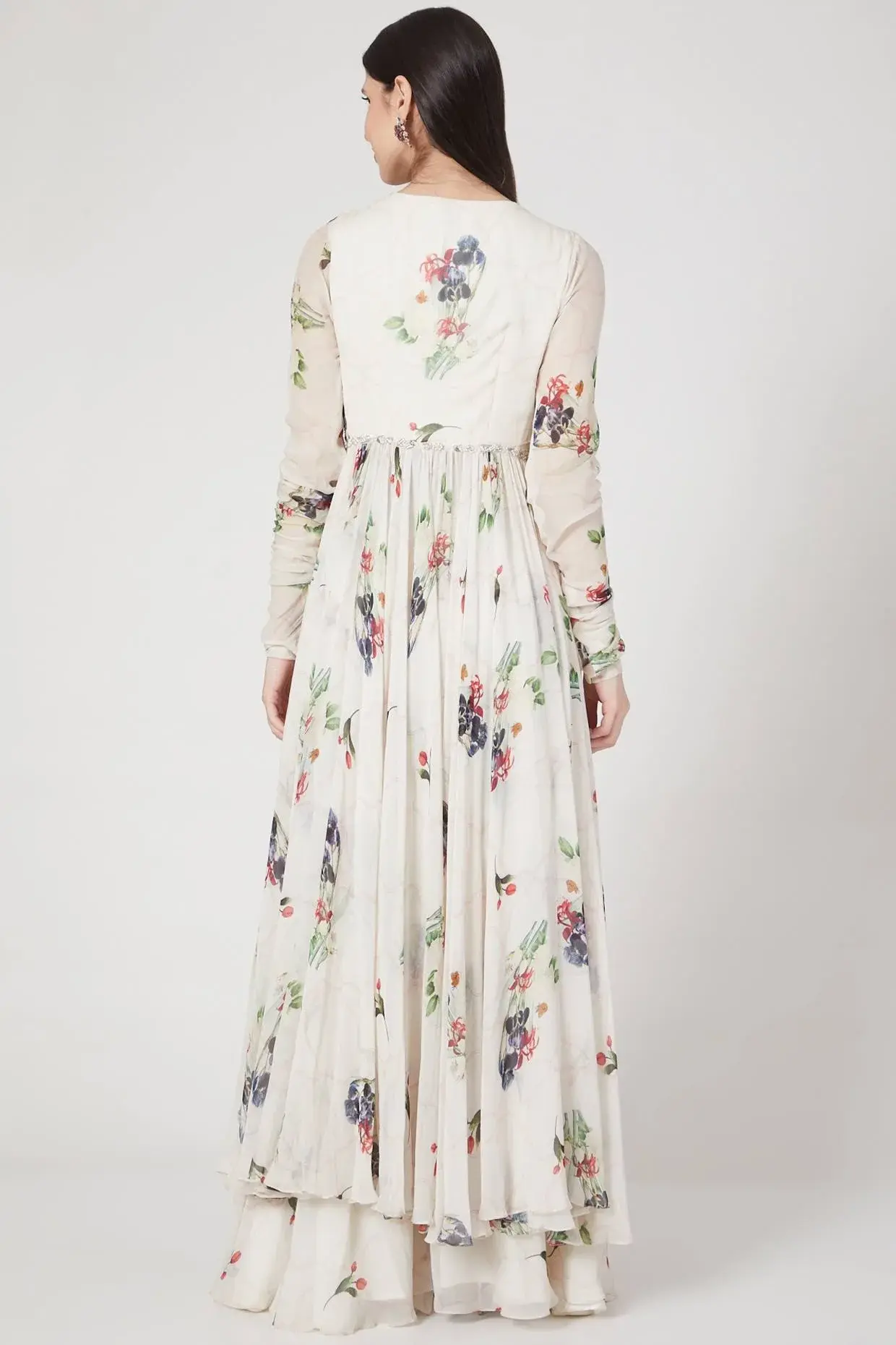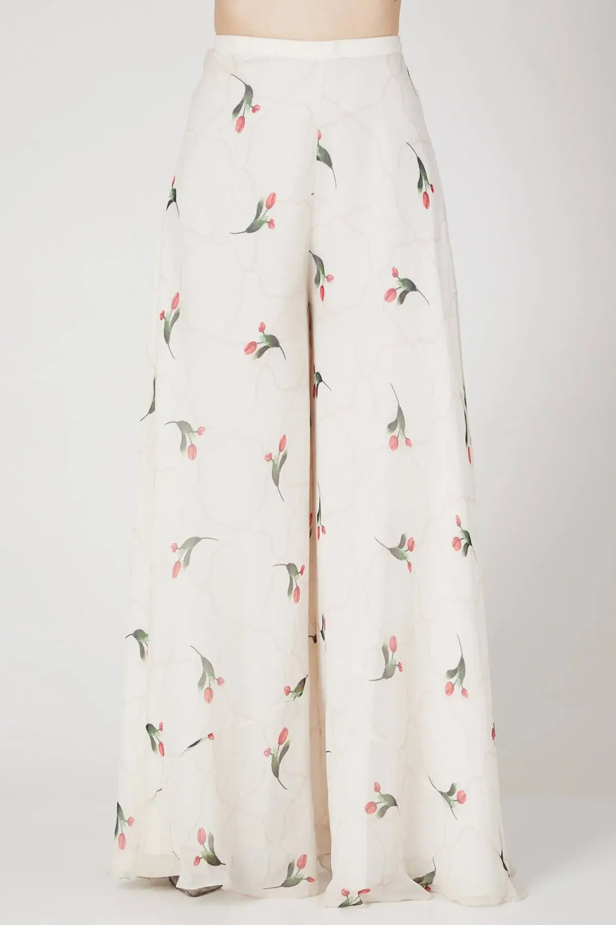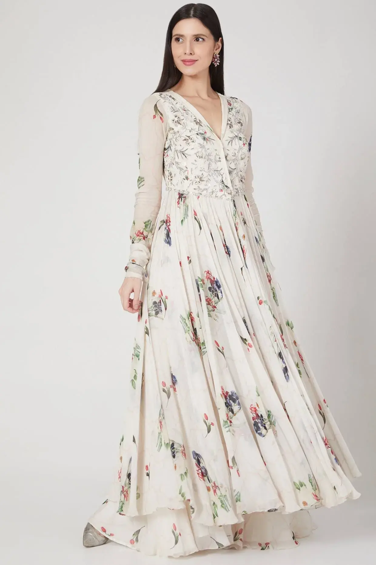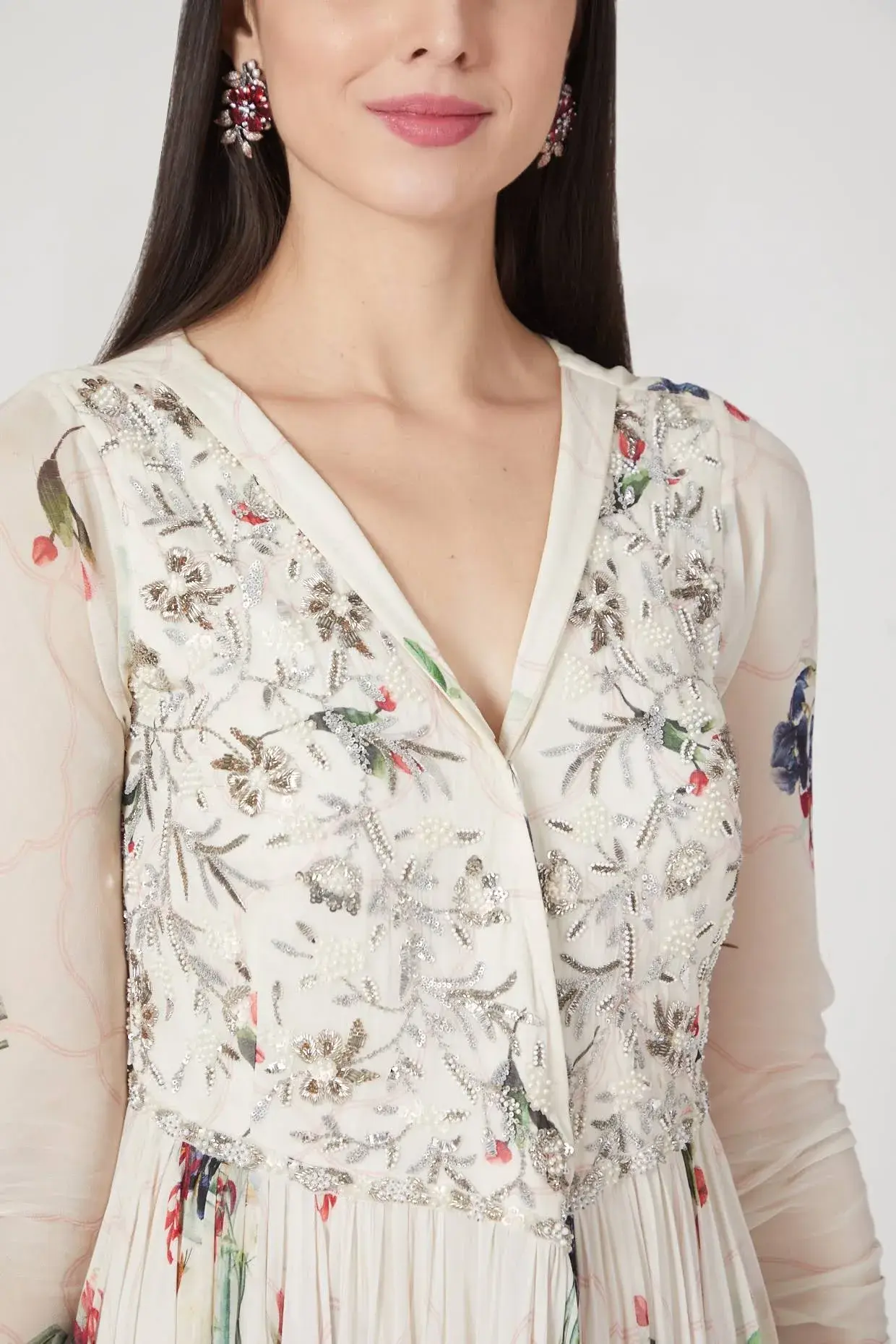 Featuring An Ivory Angrakha Kurta In Georgette And Organza Base With Print And Zardosi Embellishments. It Is Paired With Matching Palazzo Pants. Fit: Fitted At Bust And Waist. Composition: Georgette, Organza. Care: Dry Clean Only.