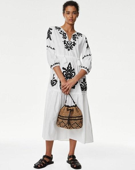 Embroidered Tiered Cotton Beach Dress