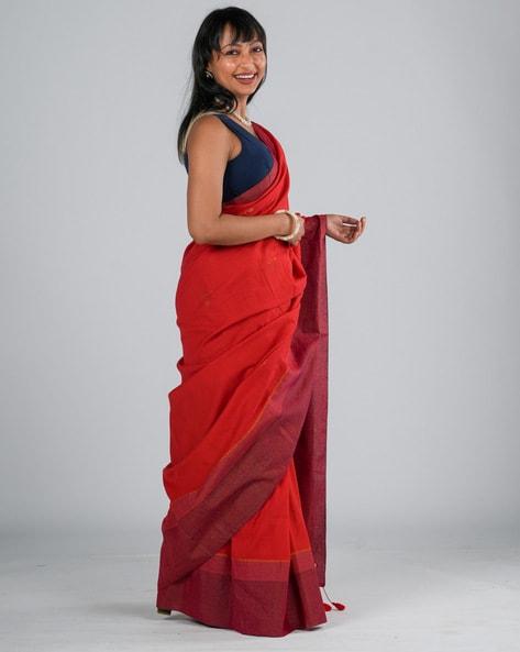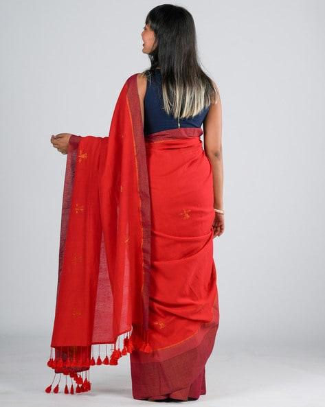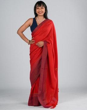 Floral Woven Cotton Saree with Tassels