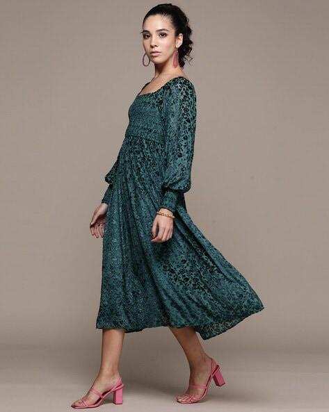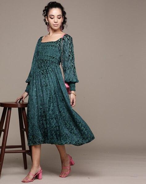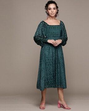 Full Sleeves Midi Flared Dress
