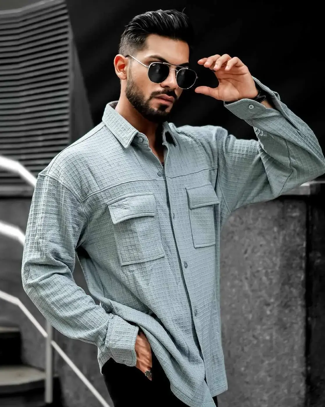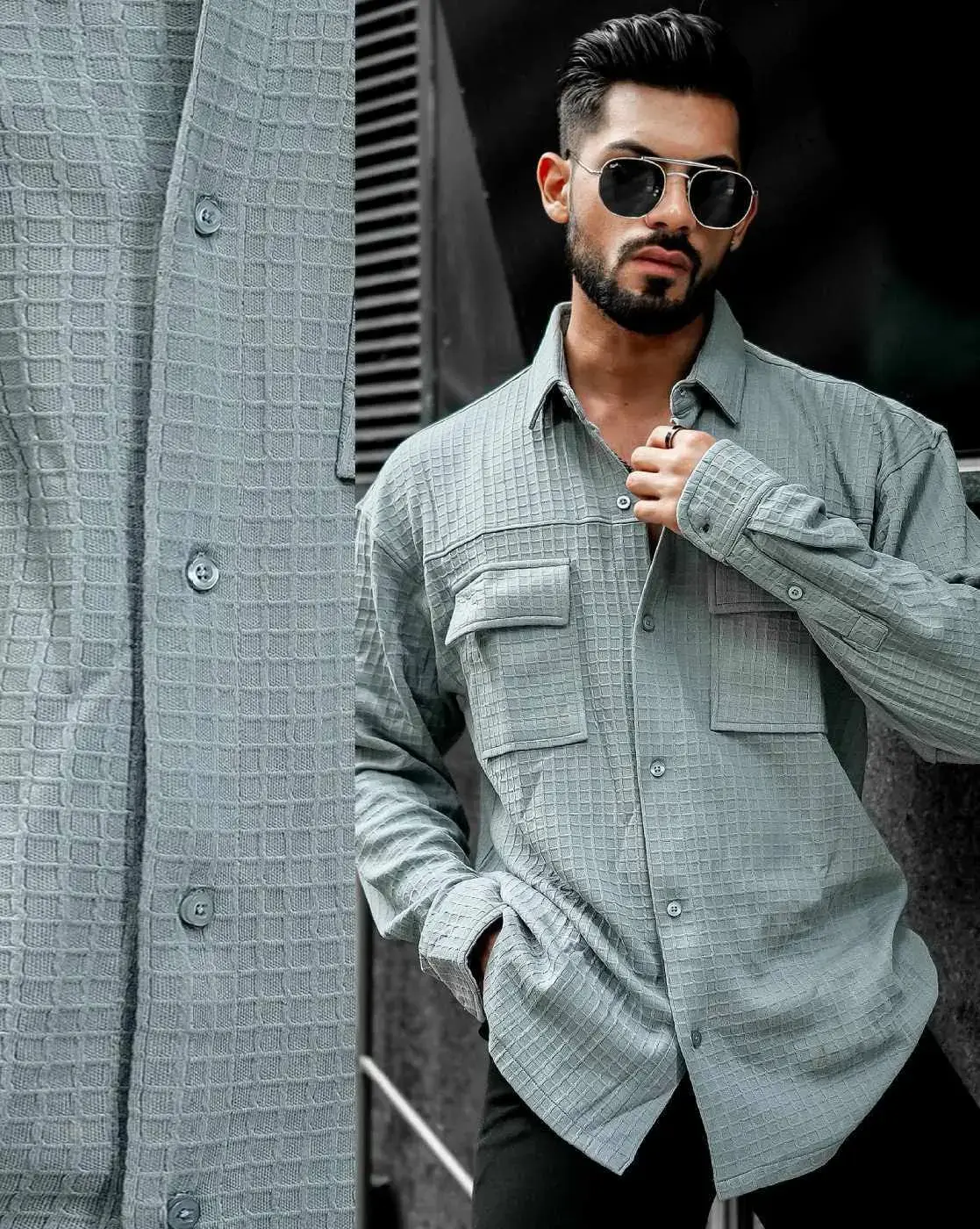 Grey, Men Oversized Shirt with Flap Pockets Casual Shirts perfect for Casual occasion. Suggested care is to Machine wash.
