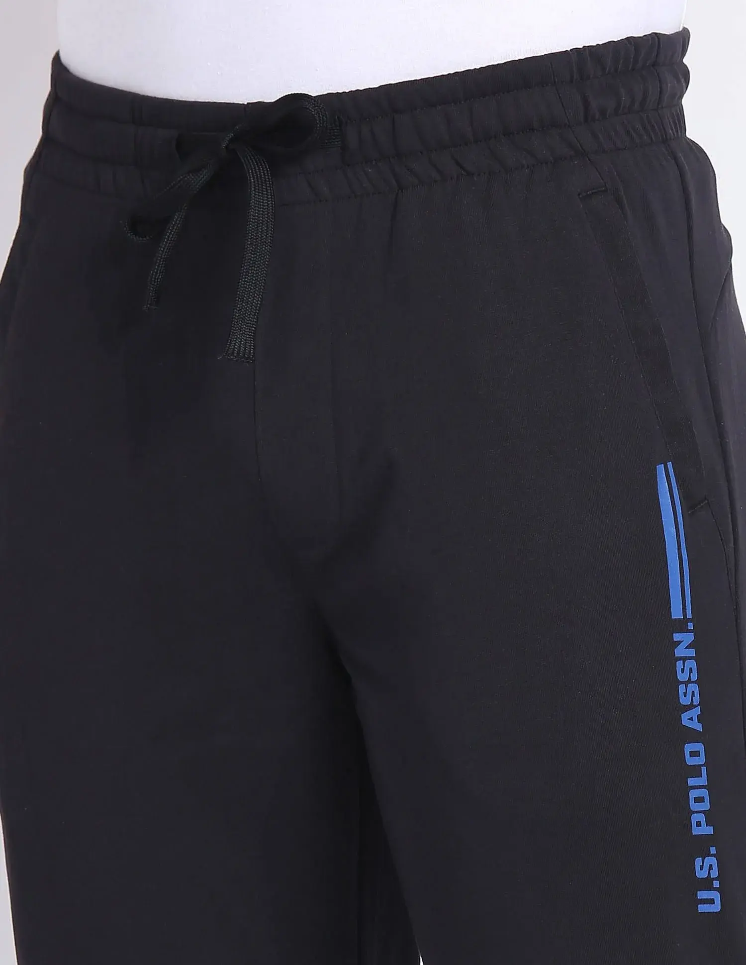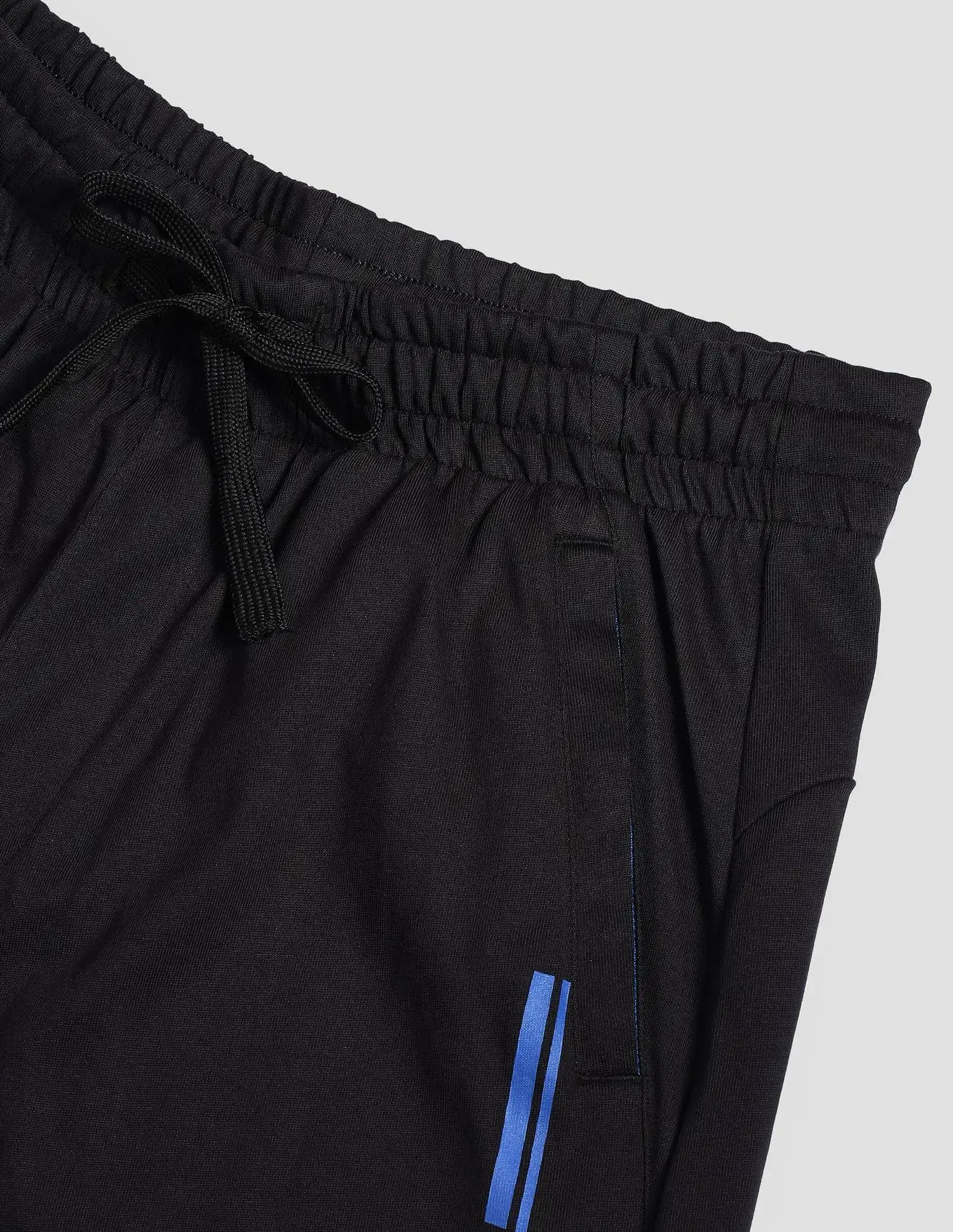 Mid-rise sits comfortably at your waist - Elasticated waistband with drawcords for better fastening - Two zipped slant front pockets and one back patch pocket to store your essentials - Stretch at knee & front panel for ease of movement - Light weight cotton and polyester blend fabric for lounge comfortable - Solid pattern with bold contrast branding on left leg - Knitted construction ensures the material is lightweight and stretchable - Core