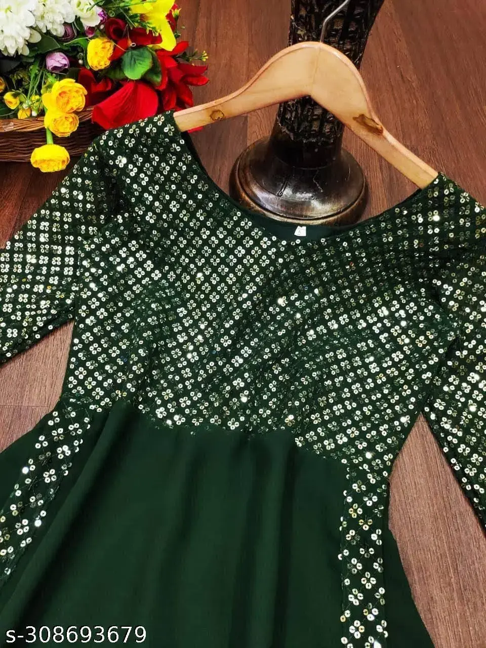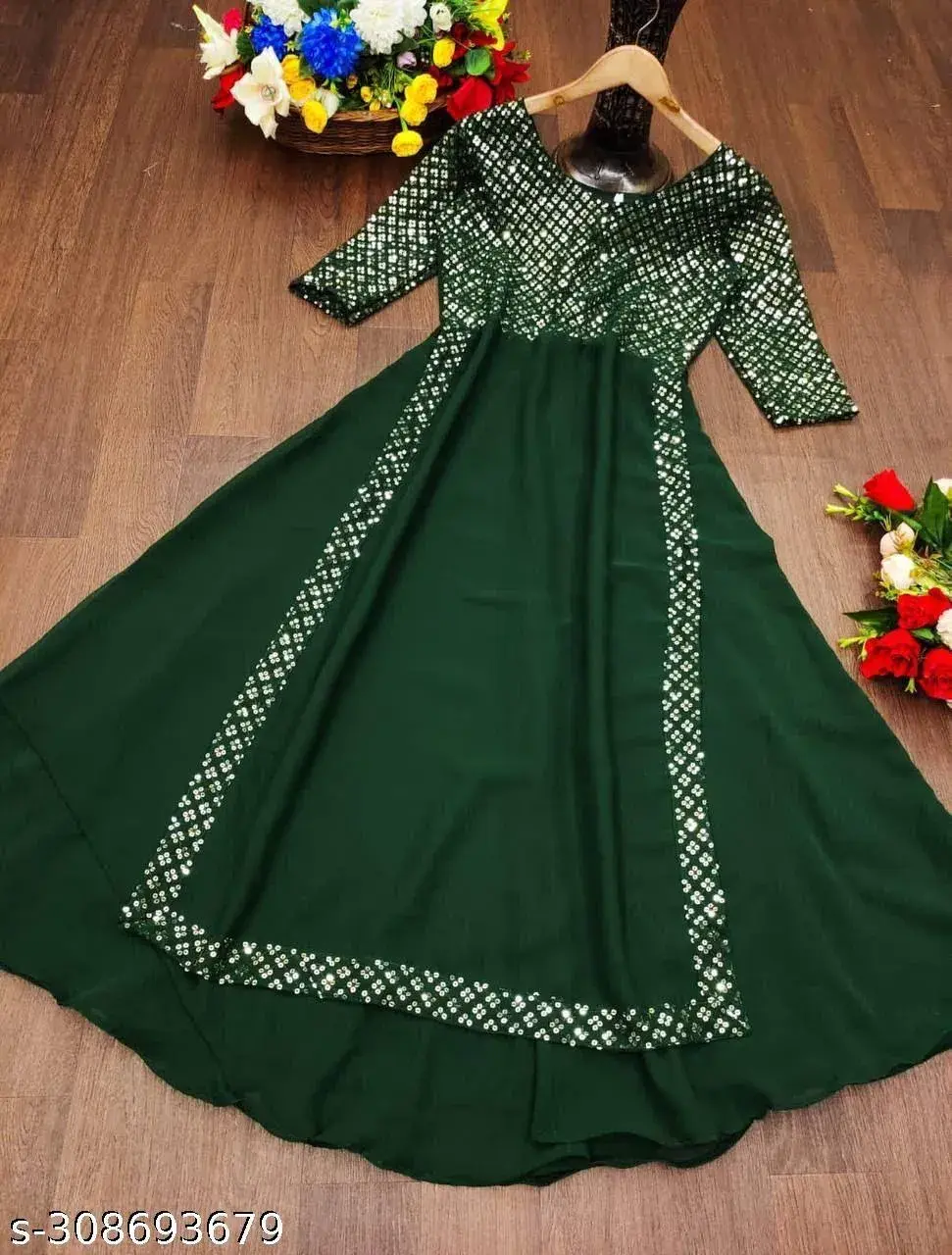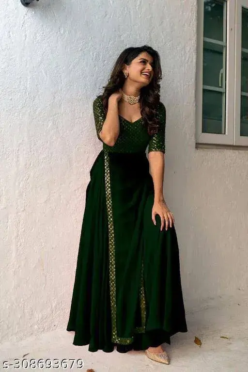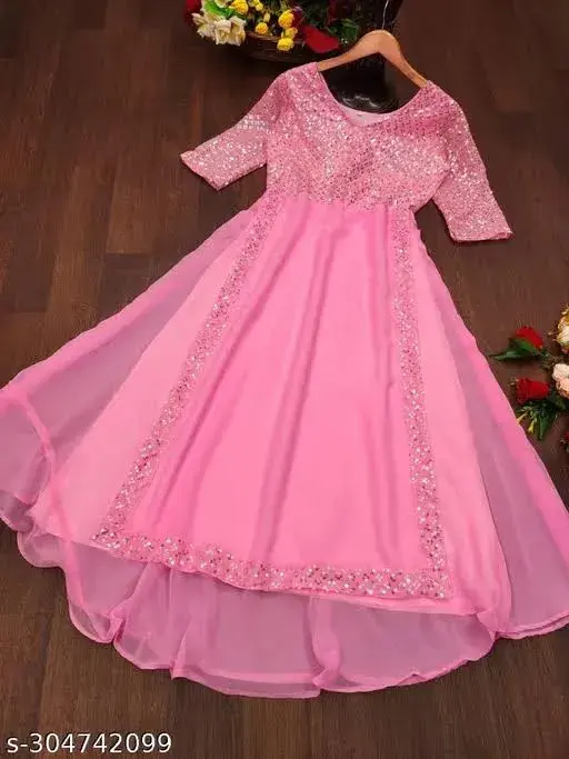 Fabric: Georgette Sleeve Length: Three-Quarter Sleeves Pattern: Embroidered Net Quantity (N): 1 Sizes: S (Bust Size: 36 in, Length Size: 52 in) XL (Bust Size: 42 in, Length Size: 52 in) L (Bust Size: 40 in, Length Size: 52 in) M (Bust Size: 38 in, Length Size: 52 in) XXXL (Bust Size: 46 in, Length Size: 52 in) XXL (Bust Size: 44 in, Length Size: 52 in) New Fancy Embroldery Sequence Work Fancy Gown With Party Wear FABRIC DETAILS Gown Fabric :Heavy Faux Georgette With Embroidery With Sequence Work INNER :- Crep SIZE S(36),M(38),L(40),XL(42),XXL(44),3XL(46) Country of Origin: India