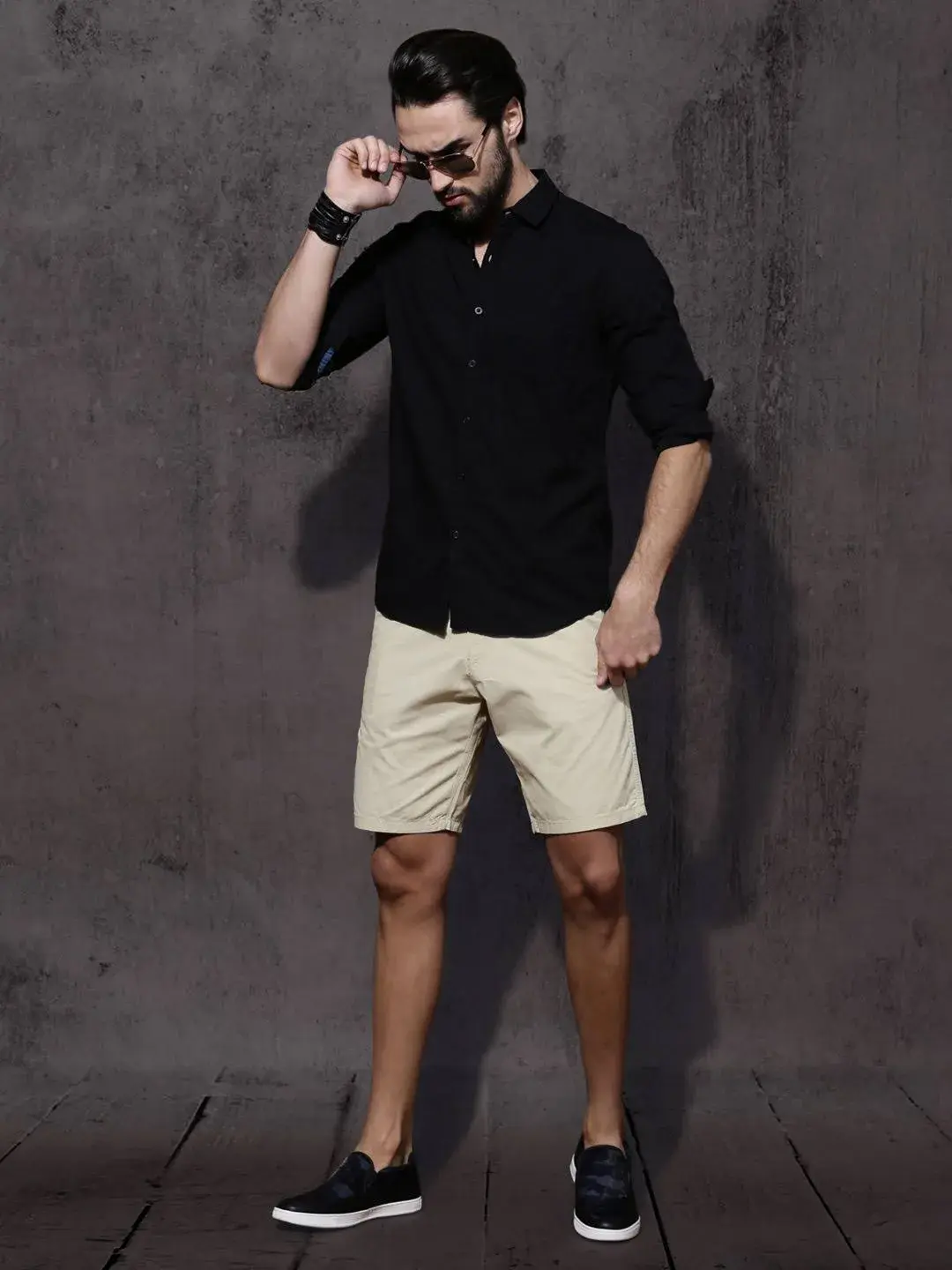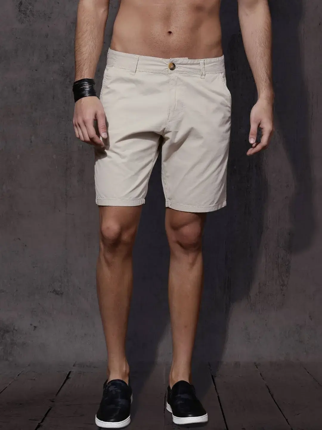 Roadster Men Beige Solid Regular Fit Chino Shorts(30) by SANKAN