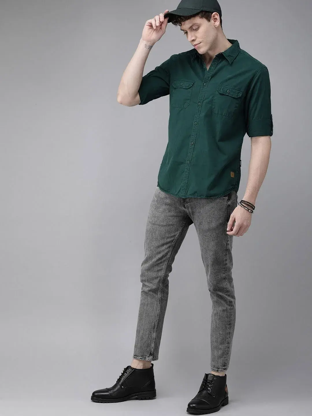 Roadster Men Green Regular Fit Solid Casual Sustainable Shirt (42) by SANKAN
