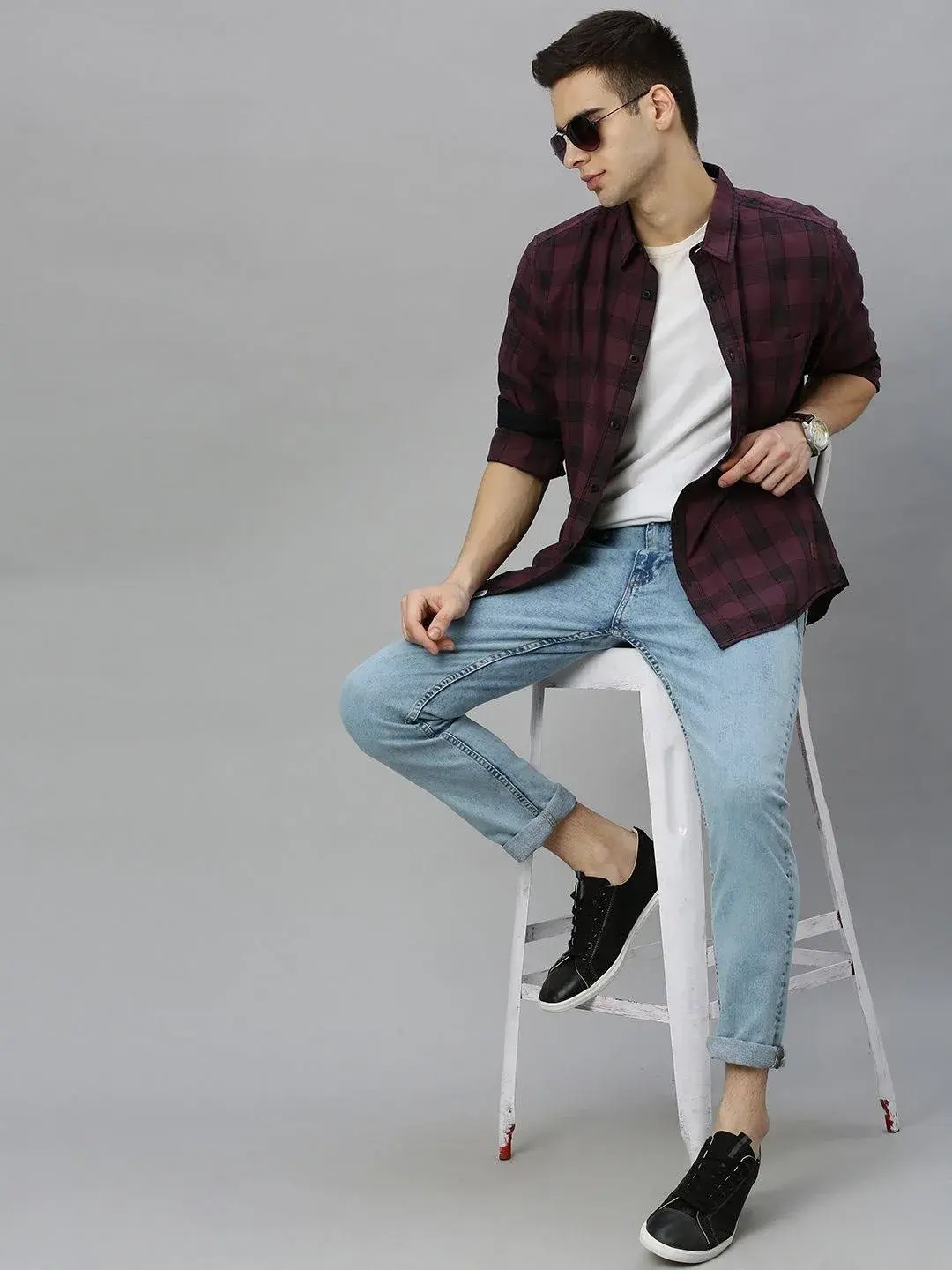 Roadster Men Wine-Coloured & Black Checked Sustainable Casual Shirt (42) by SANKAN