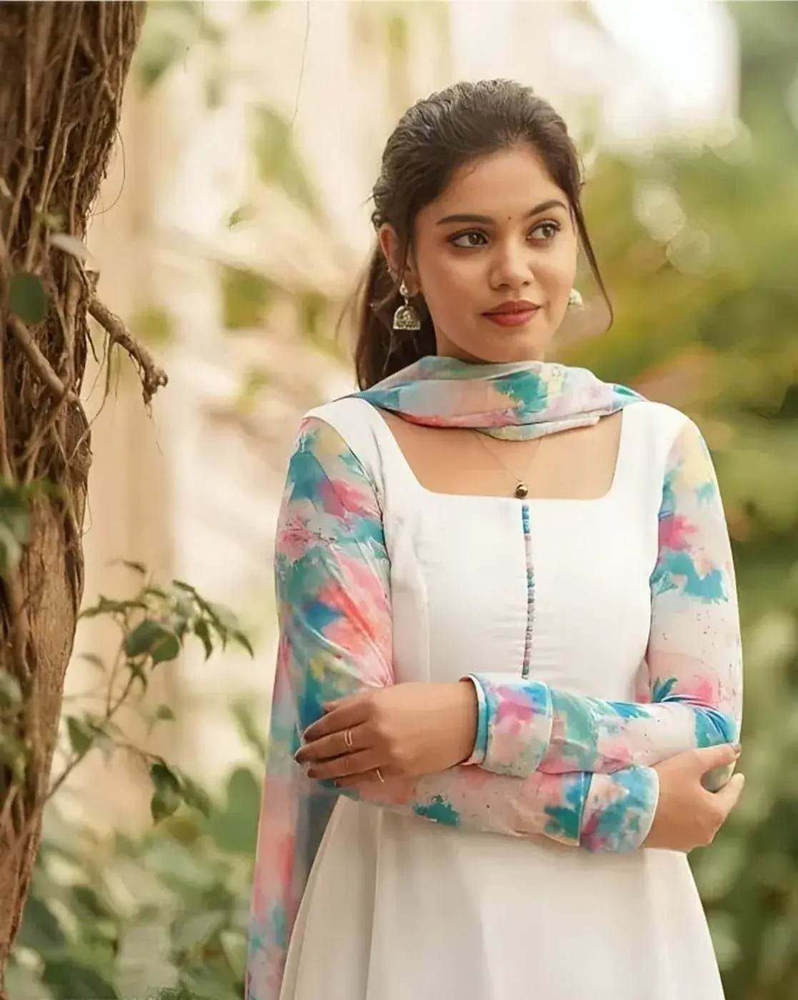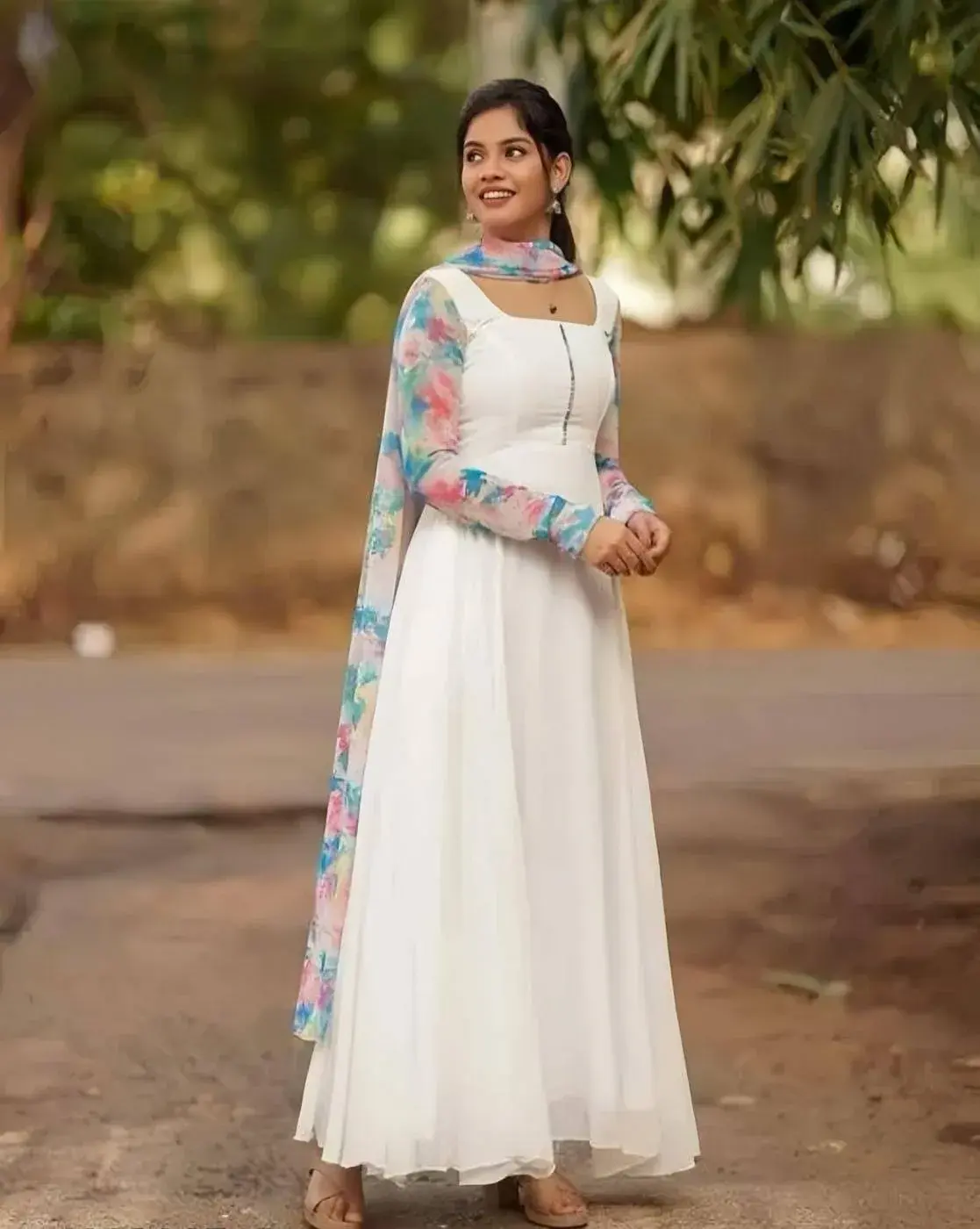 White, Women Floral Print Anarkali Kurta with Dupatta Bold Kurta Suit Sets perfect for Universal occasion. Suggested care is to Dry clean.