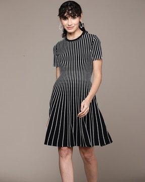 Striped Fit & Flare Dress