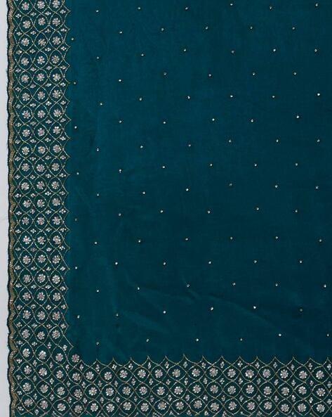 Teal Embellished Chinon Saree