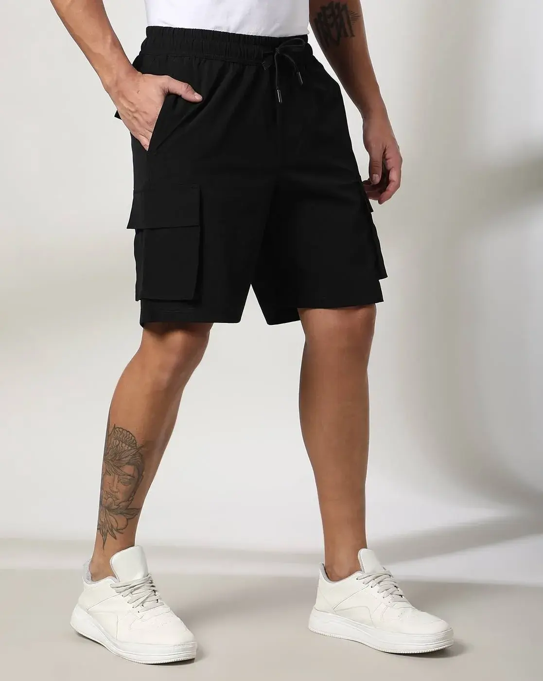 Black, Men Regular Fit Cargo Shorts Casual Shorts & 3/4ths perfect for Casual occasion.