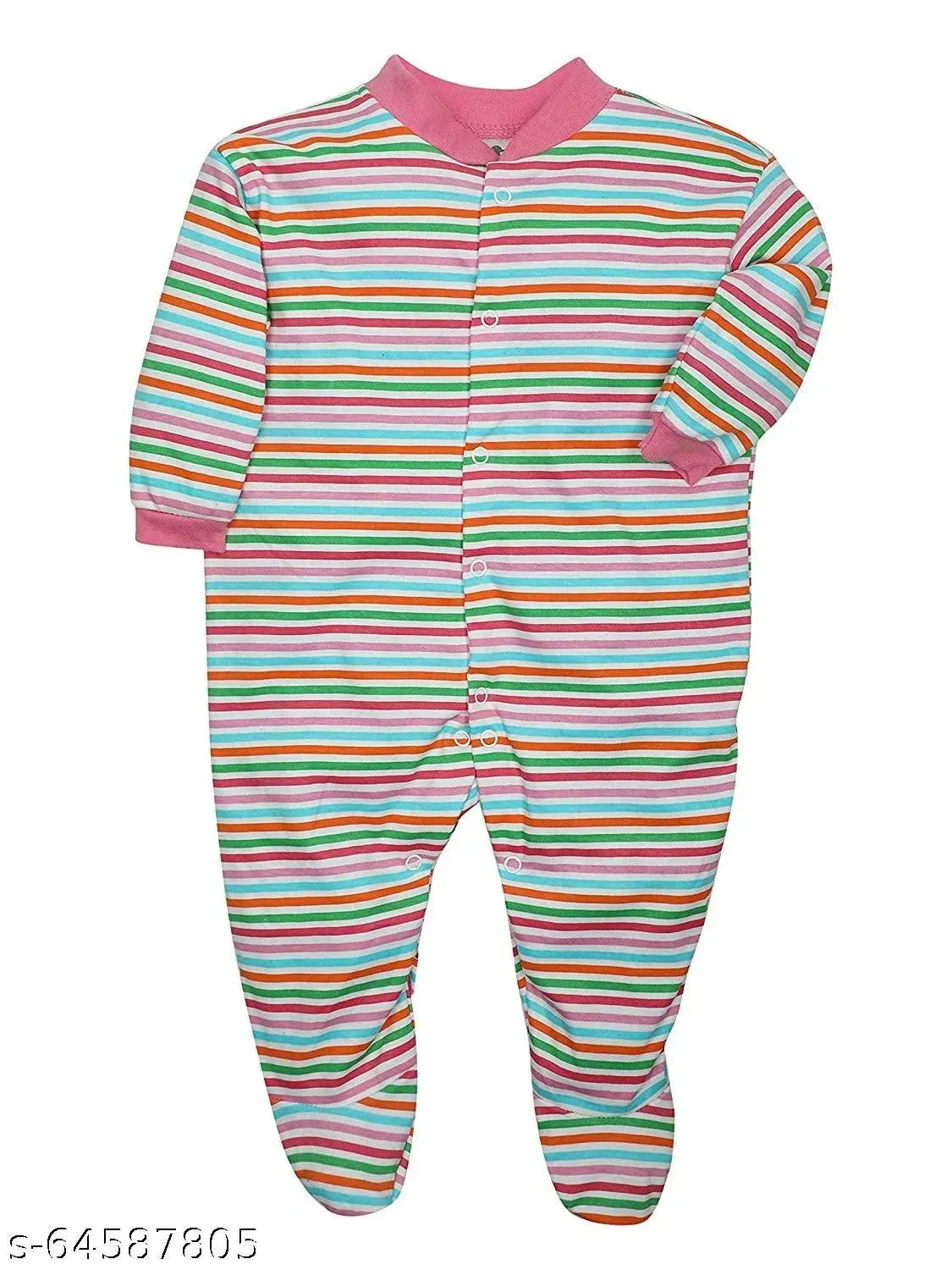 Fabric: Cotton Sleeve Length: Long Sleeves Pattern: Printed Multipack: 3 Care Instructions: Machine Wash Fit Type: Relaxed Easy dressing & diapering As a new mom, you may feel scared to dress over your baby's head. With front buttons, you can change your baby's dress with ease even when they are asleep. Hassle-free diapering You need not remove the entire dress of your baby to change the diaper. The snap button around the leg offers you the convenience to change diapers without any difficulty. Rash-free soft fabric Young baby skin is sensitive and poor fabric can cause allergy and rashes. The 100% cotton fabric makes these rompers ideal for baby's delicate and soft skin. These rompers are very soft and do not rub harshly in baby's soft skin. This set will keep your baby comfortable and relaxed all the time. Sizes: 3-6 Months, 6-9 Months, 0-3 Months, 9-12 Months, 12-18 Months