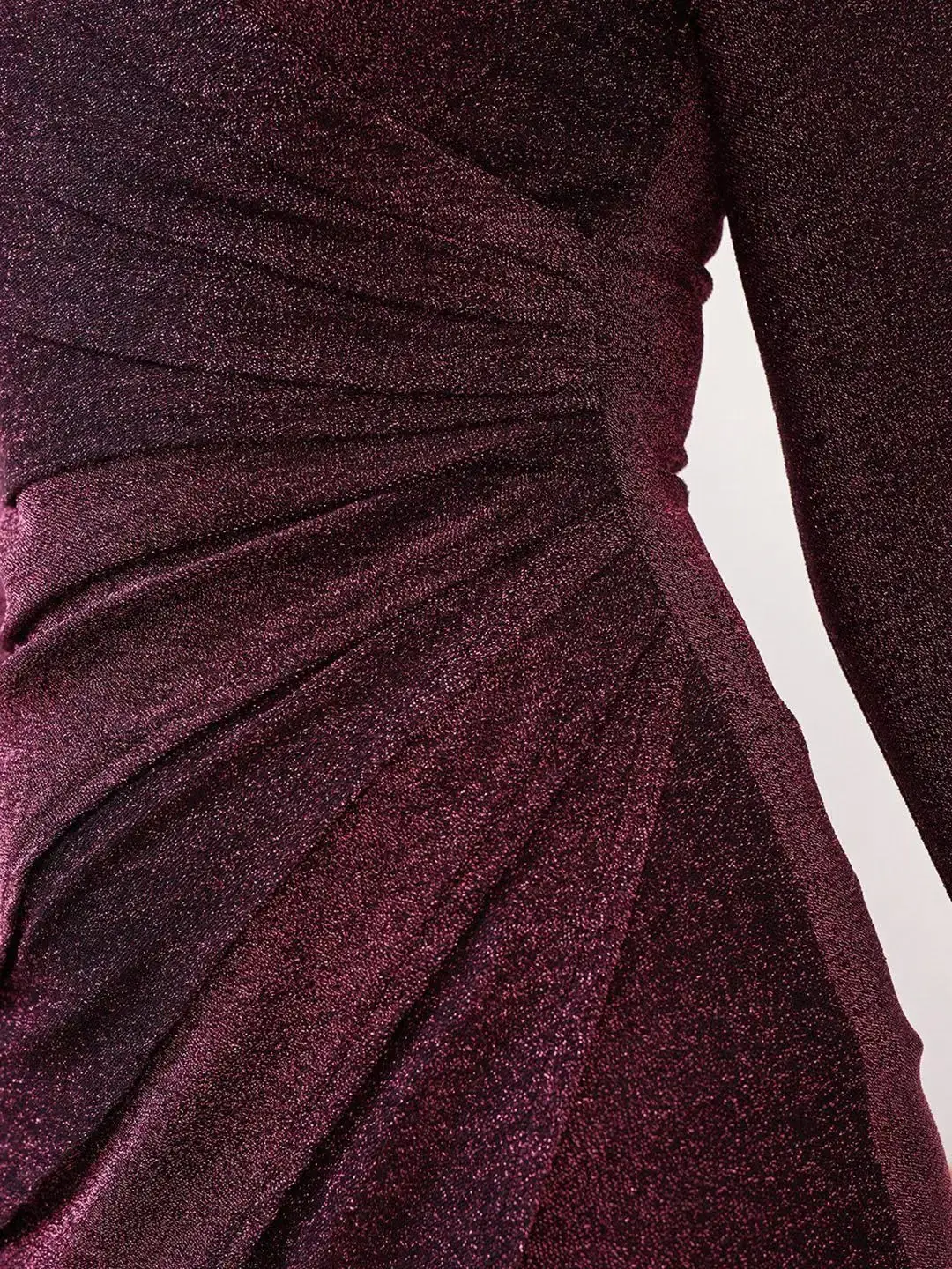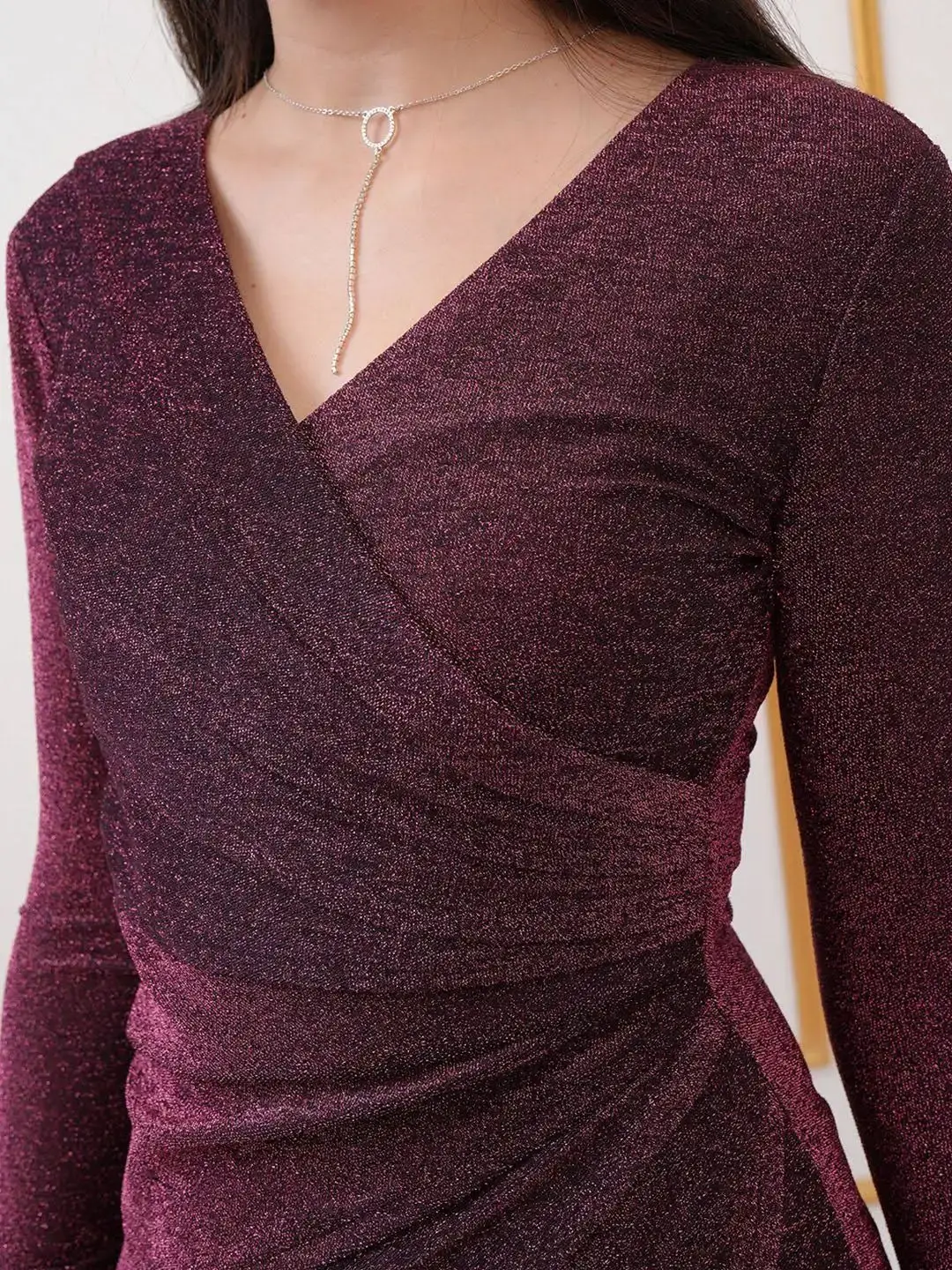 Tokyo Talkies Women Shimmer Knit Full Sleeve Party Dress With Multiple Layer Details All Over Body At Front