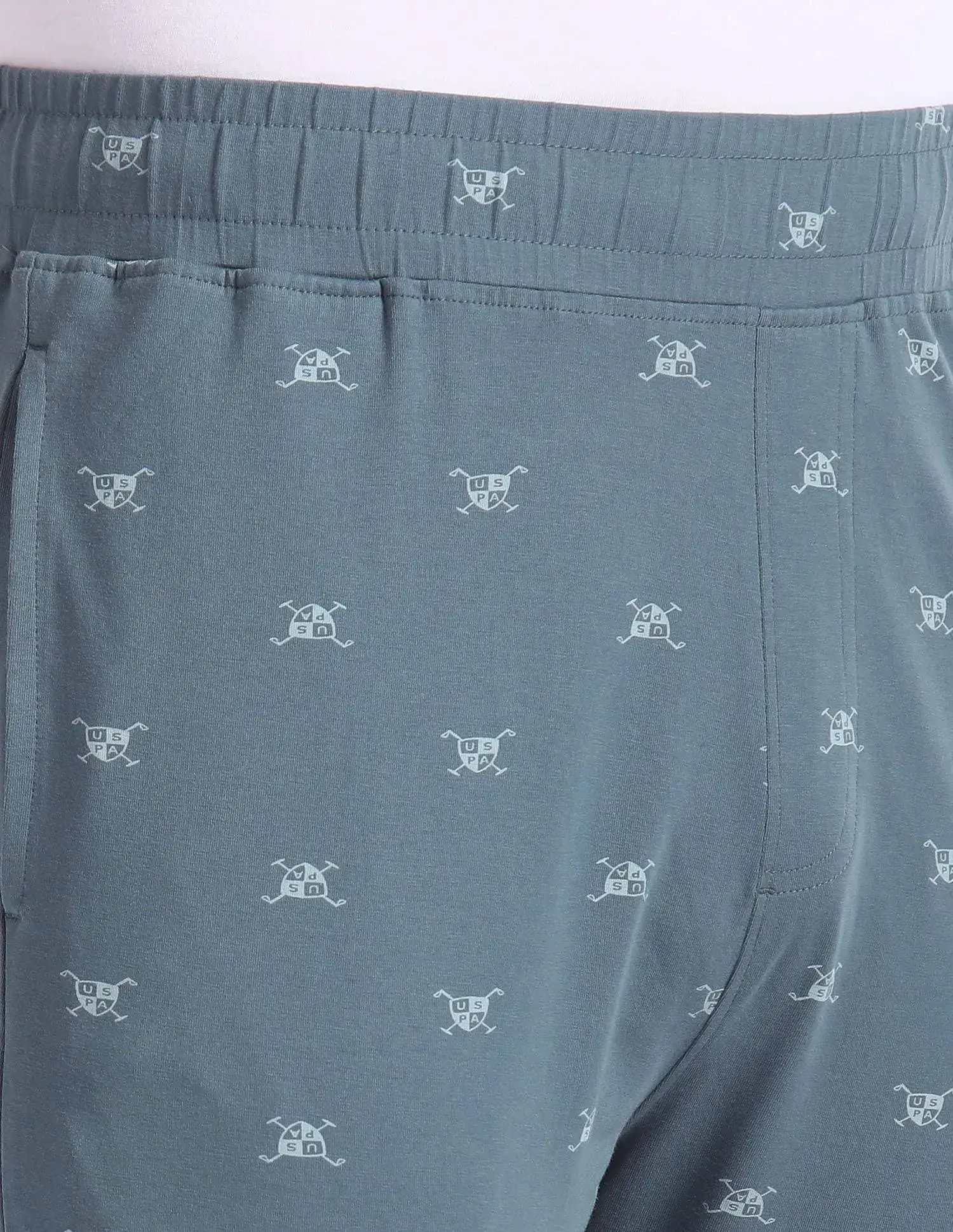 Bring a sophisticated look to your loungewear with these comfortable printed blue pyjama from U.S. It is made from finest quality which is soft and comfortable. It features slim fit, trouser style pyjama.