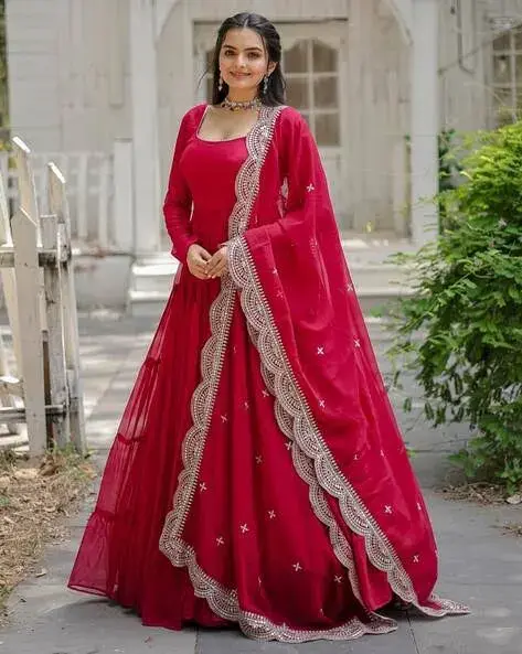 Pink, Women Embroidered Flared Kurta Suit Set Kurta Suit Sets perfect for Casual occasion. Suggested care is to Dry clean.
