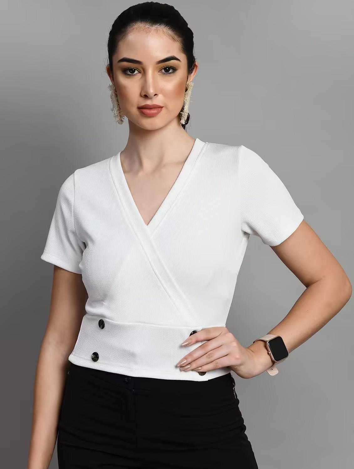 white solid overlap neck crop top