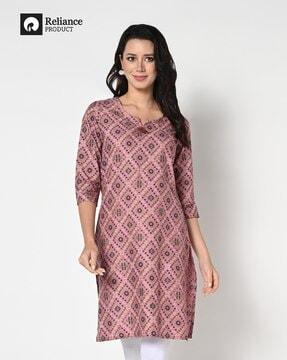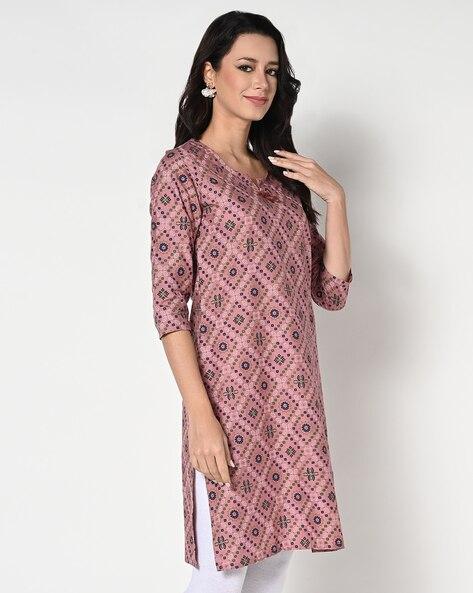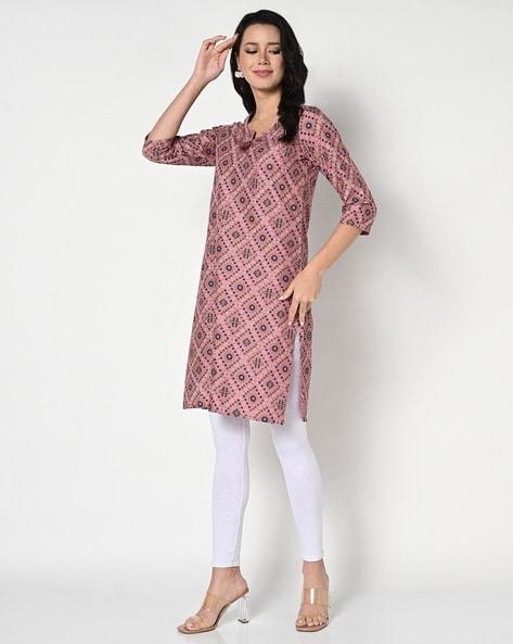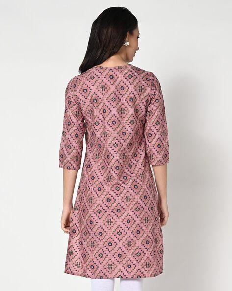 Women Bandhani Print Straight Kurta with Tassel
