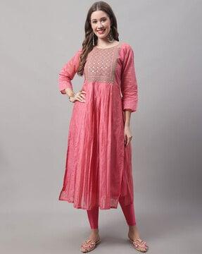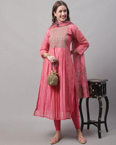 Women Embroidered Flared Kurta Pants & Dupatta Set