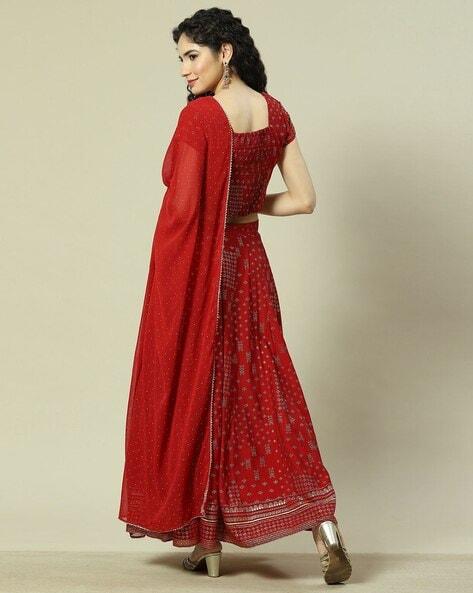 Women Floral Woven Flared Lehenga Choli Set with Dupatta