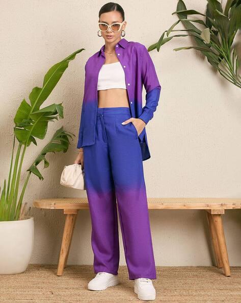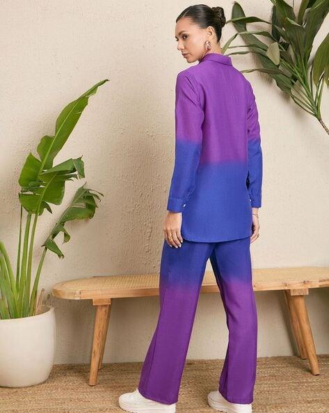 Women Ombre-Dyed Linen Shirt & Trousers Co-Ord Set
