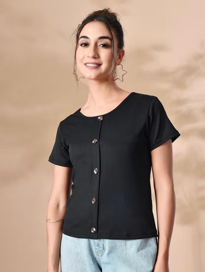women solid round neck short sleeves top