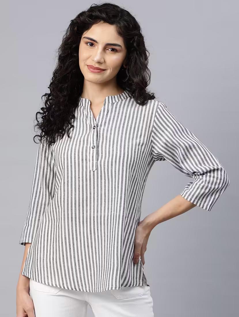 women's white regular fit mandarin neck top